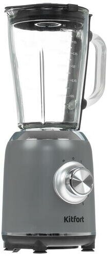 Чаша изготовлена из стекла, а также характеризуется объемом 1.7 л и удобной ручкой. Уплотнительная крышка обеспечивает герметичность. Благодаря отверстию в крышке можно добавлять продукты в процессе работы блендера Kitfort , а мерная шкала повышает удобство в приготовлении.
