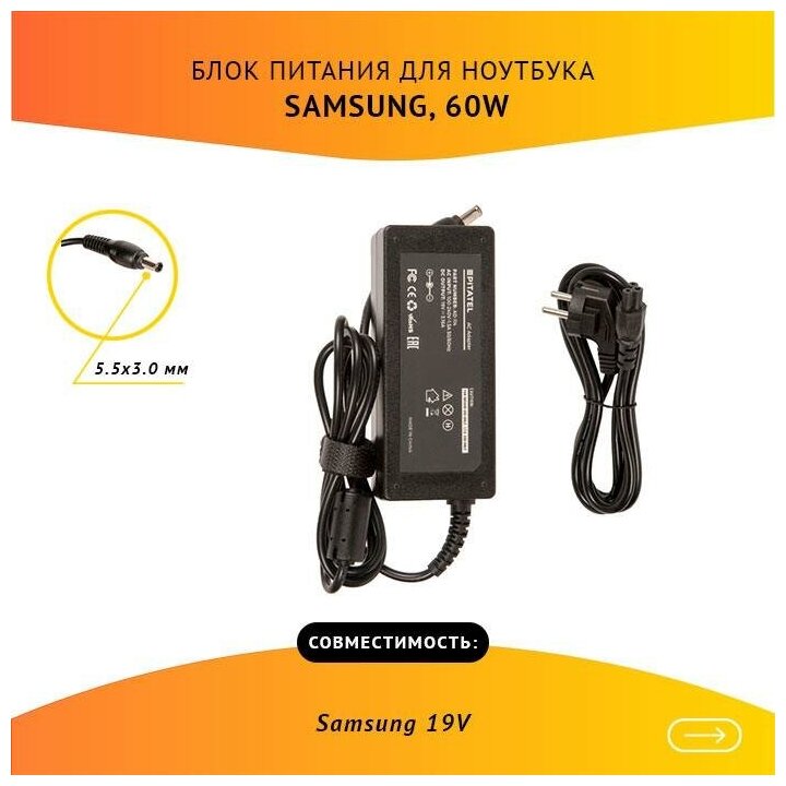 Совместимость: SPA-830E, 0335A1960, 0335C1960, 504030-015, 504030-016, 6500739, 6500887, AA-PA2N60W, AA-PA2N60W/US, AD-6019(V), AD-6019A, AD-6019R, ADP-60ZH/A, CPA09-004A, NBP001224-00, PA-1600-66, SADP-60ZH/D, SM1510, SPA-690E, SPA-690E/E, SPA-690E/UK, SPA-820E, SPA-830E, SPA-830E/EUR, SPA-830E/UK, SPA-P30E, SPA-P30E/E, SPA-P30E/UK, SPA-X10, SPA-X10/E, SPA-X10/UK, AD-6019.