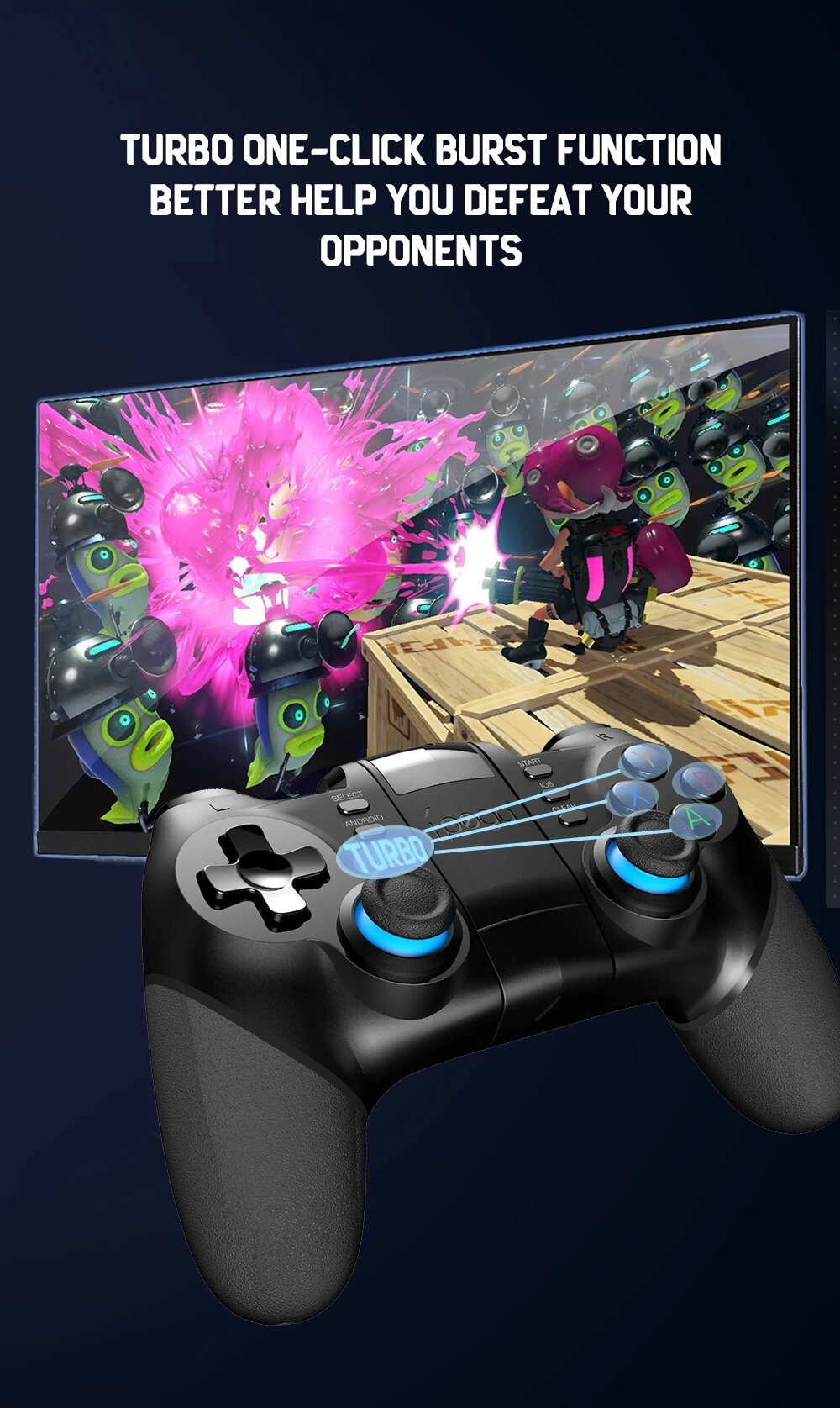 Два аналоговых нажимаемых стика, D-Pad (крестовина), 4 кнопки действия, плечевые кнопки L1/R1 и аналоговые триггеры L2/R2, Turbo