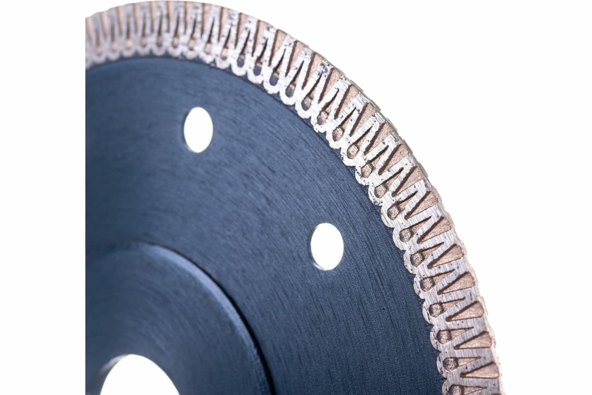Особенности: Х-образная режущая кромка позволяет резать без применения воды. Фланец на корпусе диска, для дополнительной жесткости корпуса, и ультратонкая режущая кромка обеспечивают чистый рез без сколов. Технология производства: горячее прессование