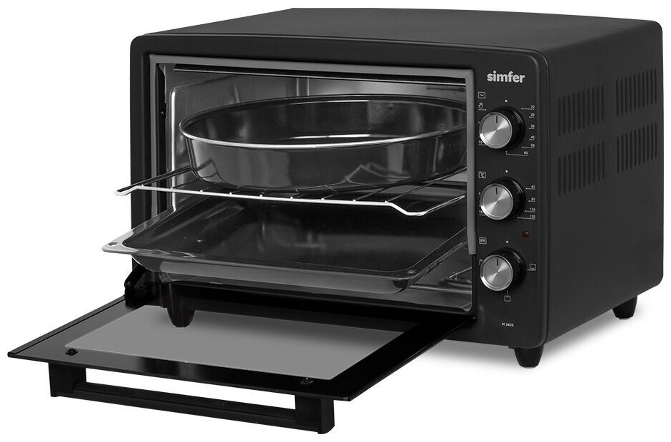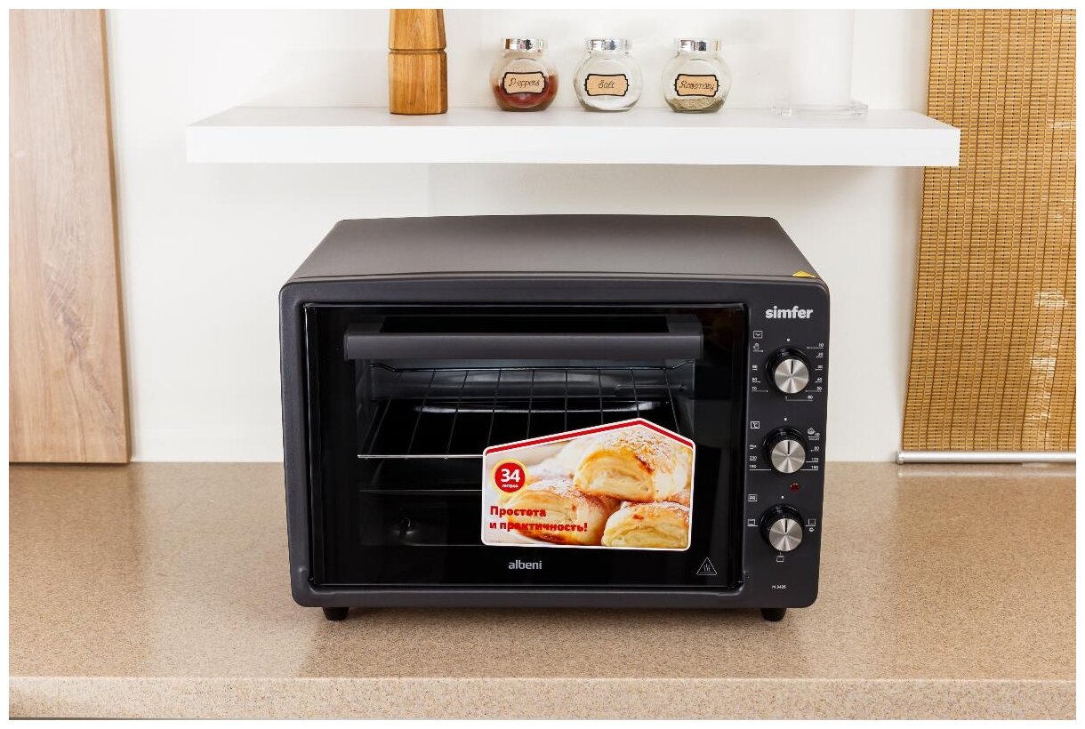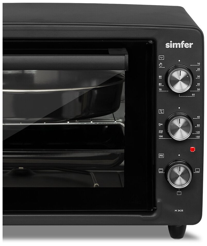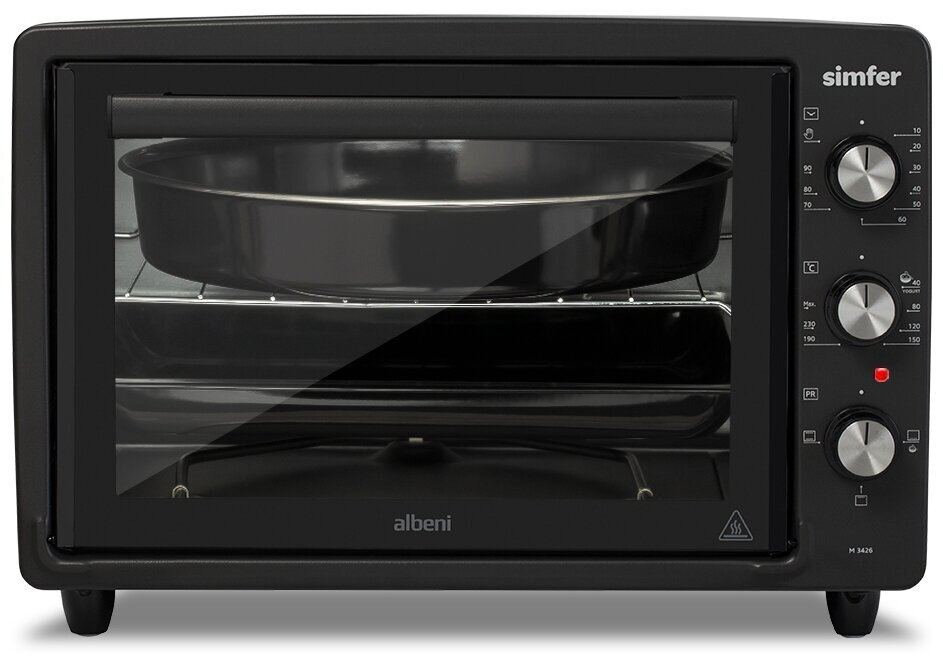 Электрическая Мини печь — Simfer - это духовка компактного размера, которая станет отличной заменой электрической или газовой плите на кухне небольшого размера или на даче и прекрасно подойдет для приготовления овощных, рыбных, мясных блюд или ароматной выпечки. Благодаря разнообразным режимам вы сможете воплотить свои кулинарные фантазии. Встроенный термостат позволит установить необходимую для приготовления блюда температуру. Автоотключение предотвращает пережаривание или подгорание блюда, если температура в печи достигла максимального уровня. Ручка с защитой от нагревания делает удобной и безопасной работу с этим устройством. В комплект входят противень и съёмная металлическая решётка, предназначенные запекания мяса или овощей. Электрическая Мини печь Simfer - экспериментируйте в приготовлении разнообразных блюд и радуйте себя и своих близких!
