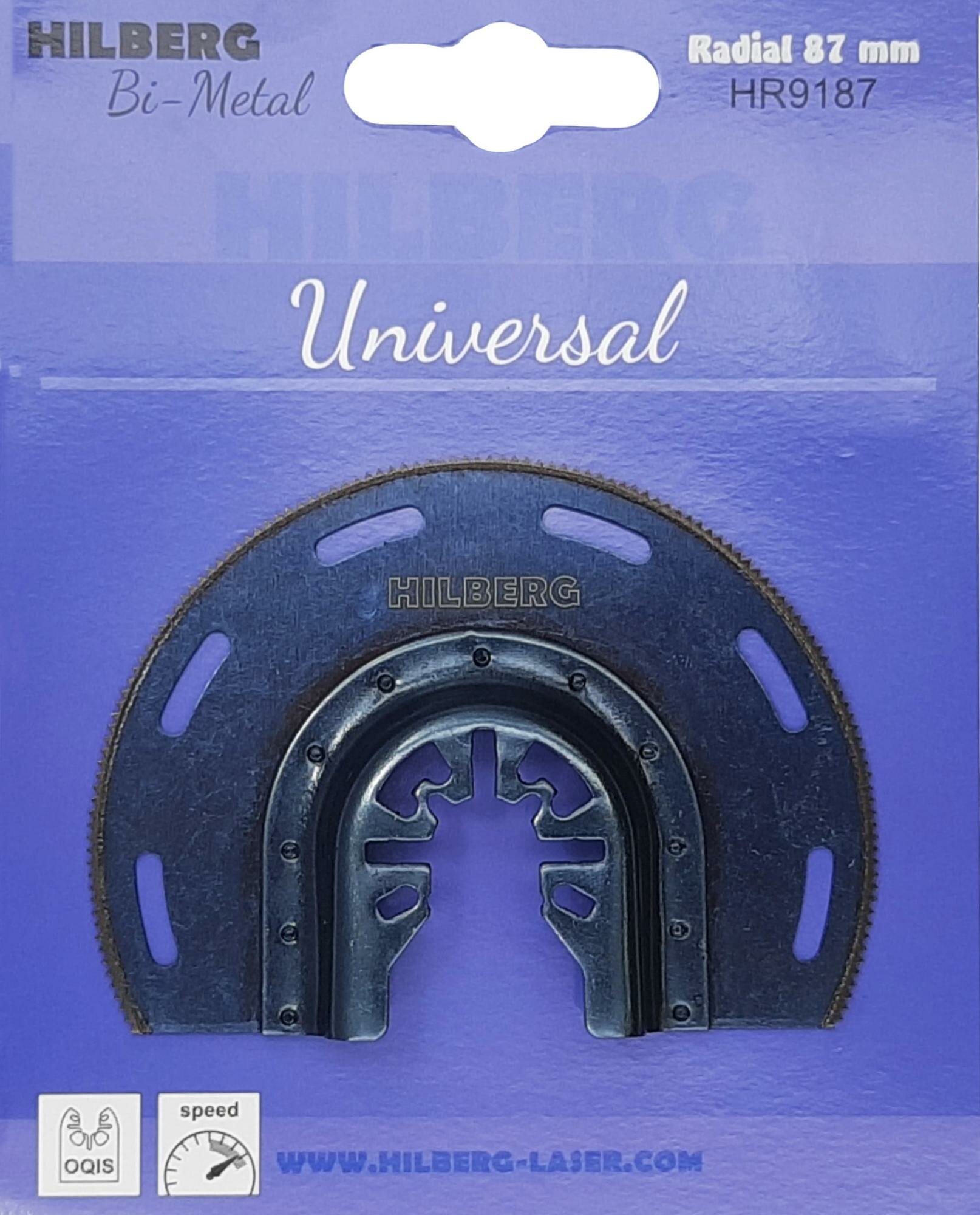 Полотно пильное универсальное Hilberg Radial , Bi-M, 87 мм используется в многофункциональном инструменте (реноваторе). С его помощью осуществляют рез в труднодоступных местах. Применяют для точных работ по древесине, пластику, гипсокартону, стекловолокну, алюминию, меди и листовому металлу.Преимущества Изготовлено из биметалла (Bi-M) Устойчиво к появлению коррозии Тип соединения: универсальная система крепежа для МФИ - OQIS Имеет длительный срок эксплуатации