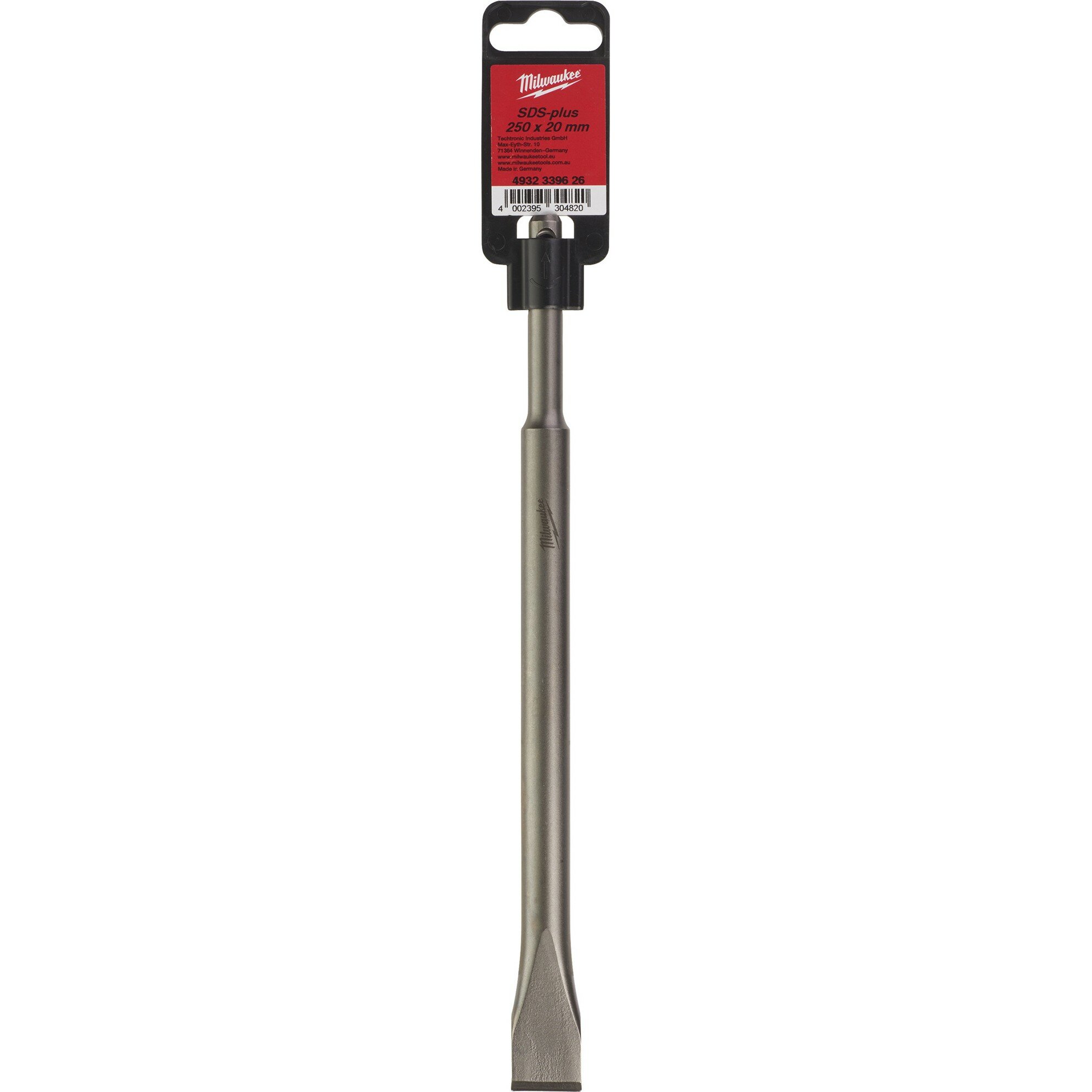 Долото SDS-Plus Milwaukee плоское 20x250мм () имеет загнутую рабочую часть для предотвращения повреждения стен при снятии плитки.