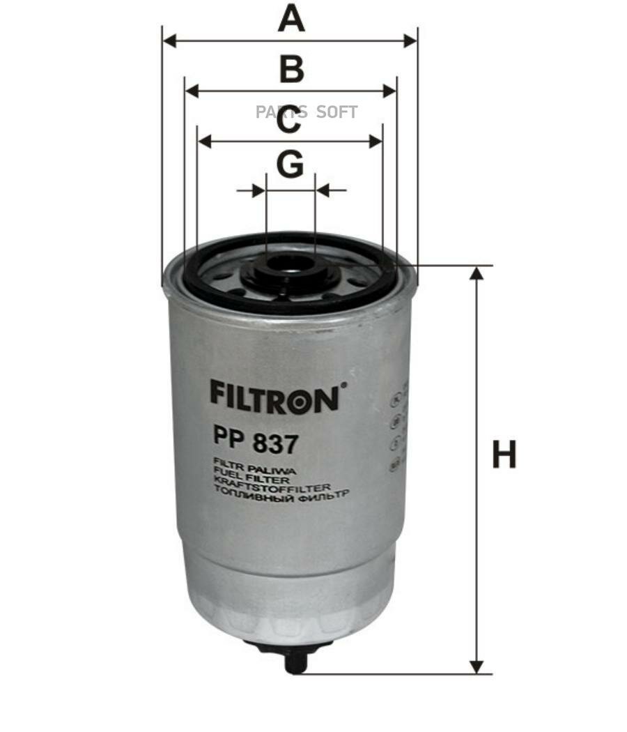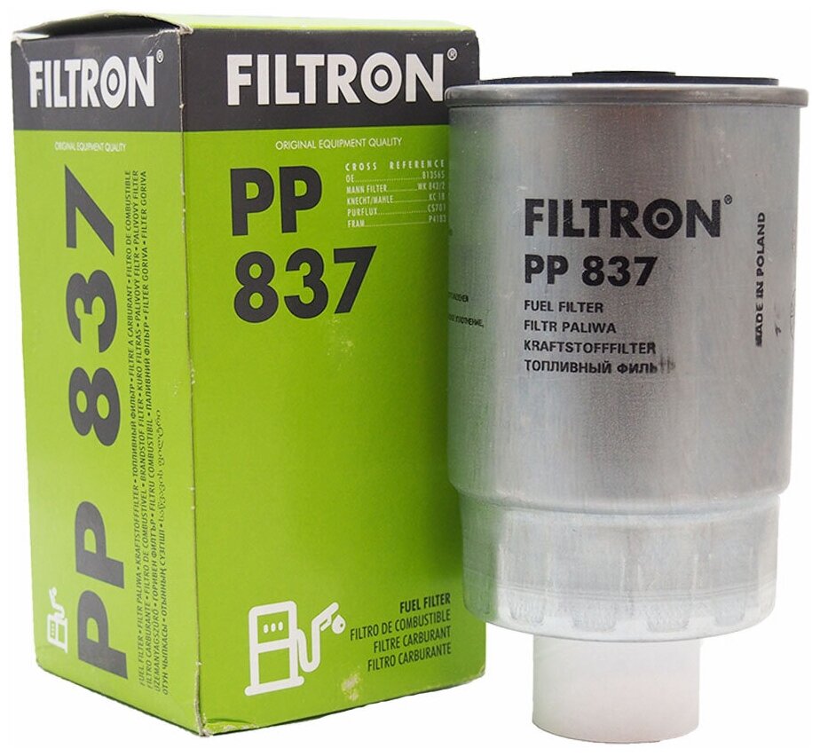 Фильтр топливный FILTRON PP 837 для Audi, DAF, Fiat, Ford, Iveco, Opel, Renault, Seat, Tarpan, VW, Volvo обеспечивает тщательная и эффективную фильтрацию, задерживая мельчайшие примеси, которые в несколько десятков раз меньше песчинок. Высокое качество фильтров FILTRON обусловлено опытом и современными стандартами производства.Защита современных систем впрыскаИспользуемые в дизельных двигателях системы впрыска требуют очень эффективной фильтрации и отделения воды. FILTRON предлагает широкий ассортимент топливных фильтров для автомобилей с современными системами впрыска. Эти фильтры соответствуют самым высоким стандартам, благодаря высокотехнологичным решениям, таким как, например, многоступенчатое отделение воды.Фильтрующие материалы, адаптированные к требованиям двигателяВ топливных фильтрах FILTRON применяются высокоэффективные фильтрующие материалы, учитывающие требования изготовителя двигателя или транспортного средства. Эффективность и свойства используемых фильтрующих материалов испытываются в современной лаборатории, в которой ежегодно проводим около 4000 тестов.