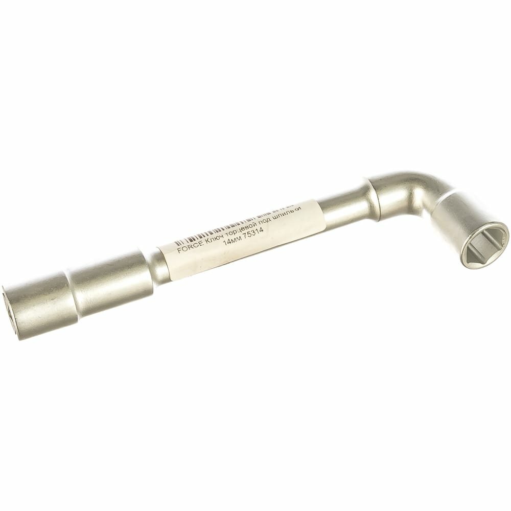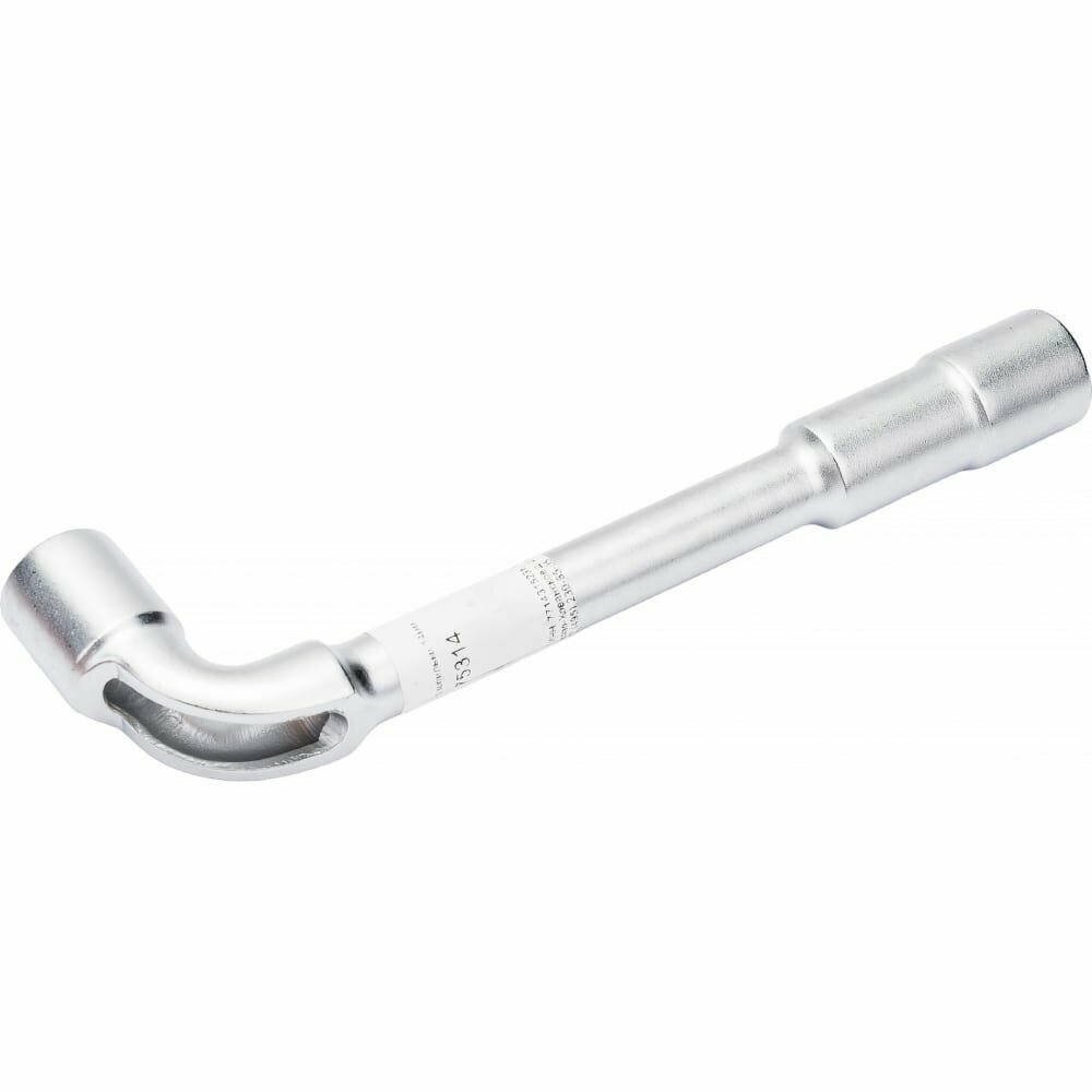 Ключ Г-образный под шпильку 14мм. Применяется для работы с крепежом при ремонте автомобиля. Имеет стандартный шестигранный рабочий профиль, на короткой стороне есть сквозное отверстие под шпильку. Торцевые рабочие части ключа расположены под углом друг к другу, тем самым обеспечивая более удобный монтаж и значительно сокращая время ремонта автомобиля при работе в труднодоступных местах.