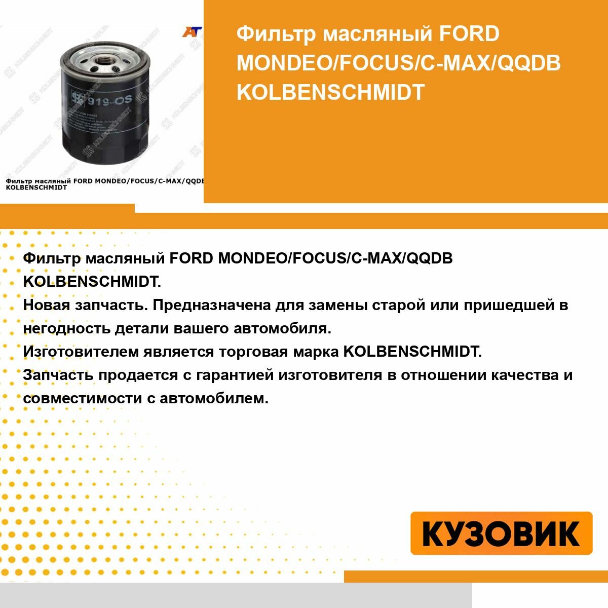 - Обзор масляного фильтра KOLBENSCHMIDT 50013919.