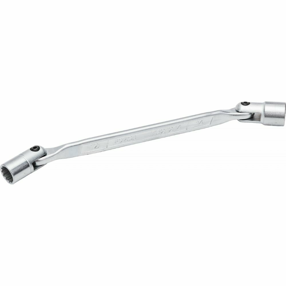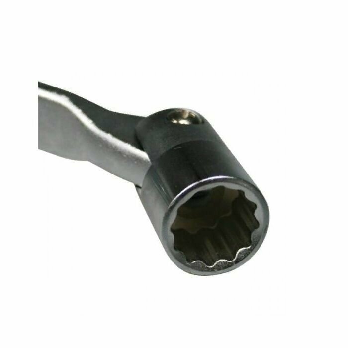 Такой тип ключа используется во многих отраслях, в том числе и для ремонта автомобилей, при чём как на профессиональном, так и на бытовом уровне. Шарнирный механизм позволяет проводить работы под любым углом. Кроме того форма ключа позволяет работать с крепежом, находящимся в углублении. Инструмент выполнен из качественной хром-ванадиевой стали, что гарантирует ему надёжность и износостойкость.