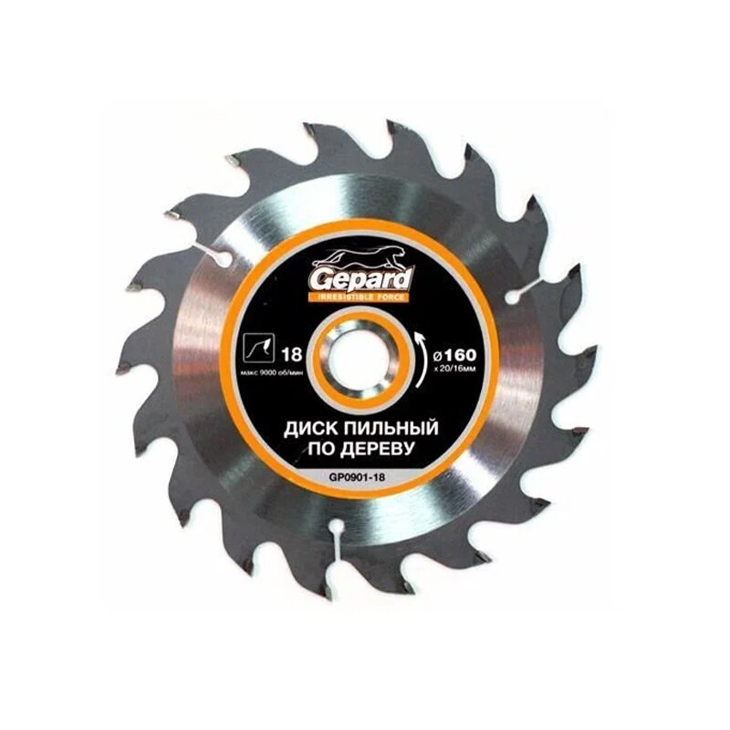 Диск пильный 160х20/16 мм 18 зубьев GEPARD для распиловки заготовок из мягких и твердых пород древесины, фанеры, ДСП. Изготовлен пильный диск из пружинной стали марки 65MN. Форма зуба (ATB) с положительным углом наклона обеспечивает эффективную распиловку крупных заготовок. Твердосплавные напайки из сплава карбид вольфрама (YG6X) припаяны высокопрочным припоем. Алмазная заточка с выхаживанием значительно увеличивает срок службы инструмента. Тщательно подобранный угол заточки твердосплавных зубьев позволяет производить качественные и высокопроизводительные работы по распиловке древесины. Компенсационные прорези уменьшают колебания, подавляют шумы и препятствуют изгибанию диска при нагреве.