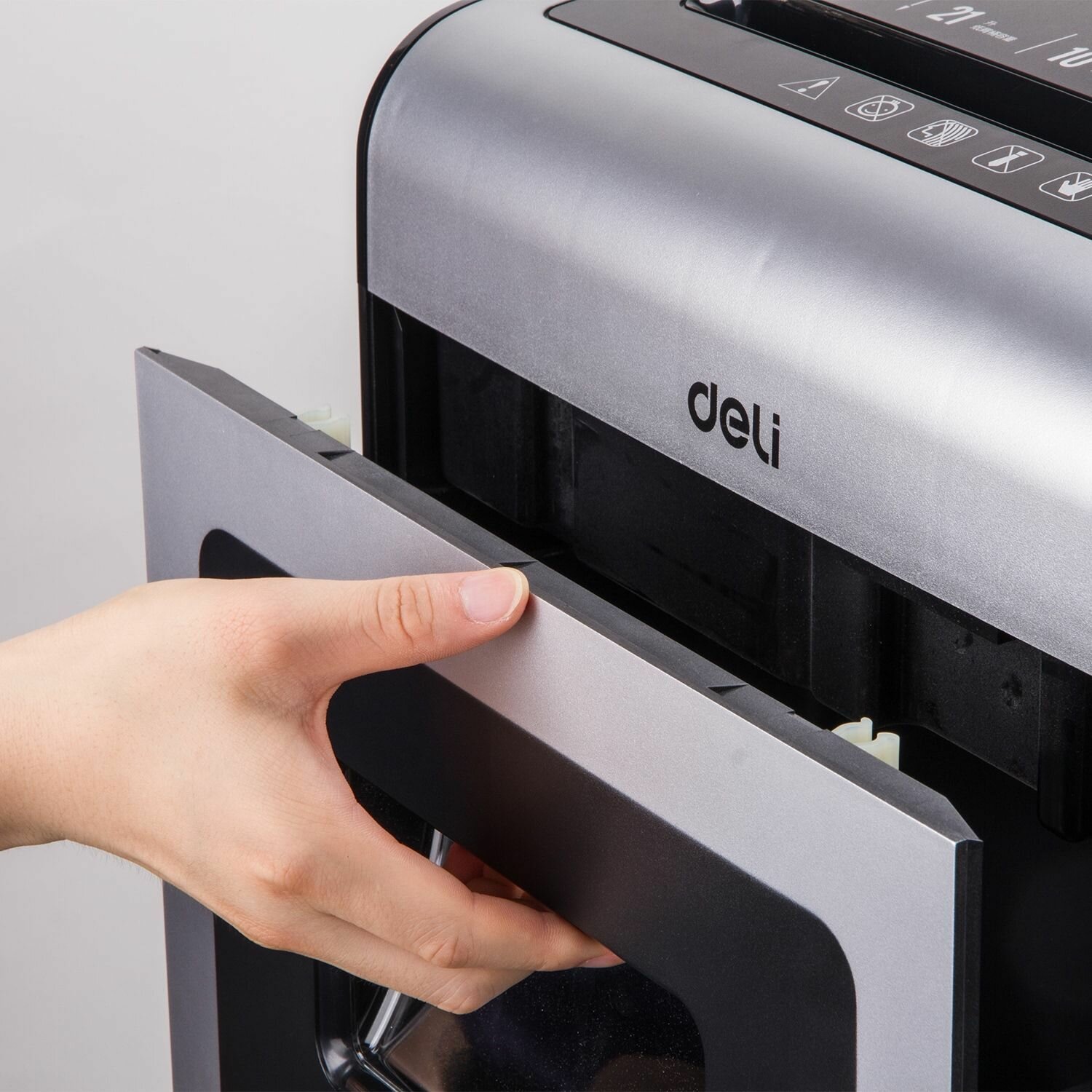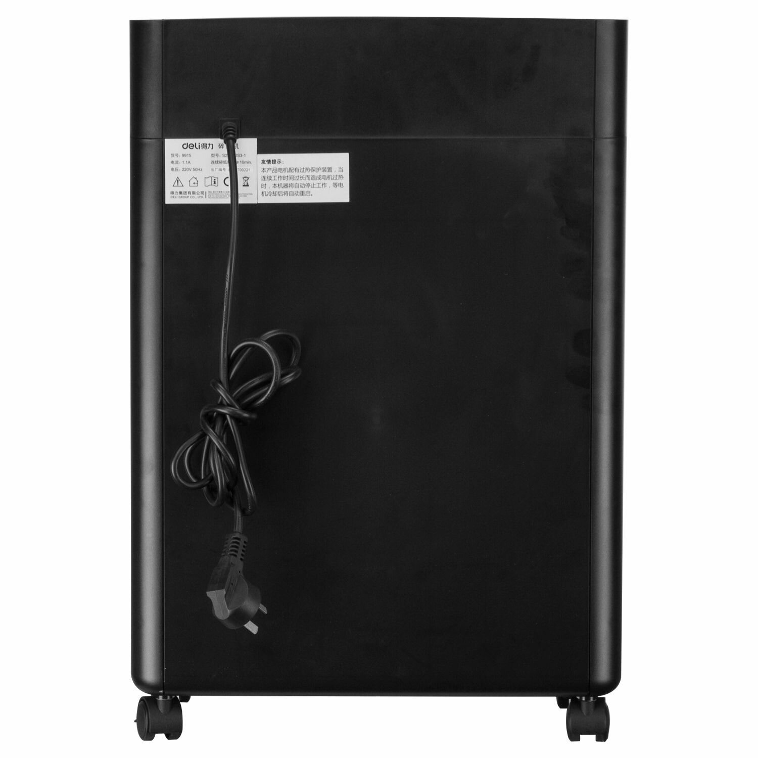 Уничтожитель бумаг DELI P-4 3x15мм 10 лист. одновременно 21л 9915