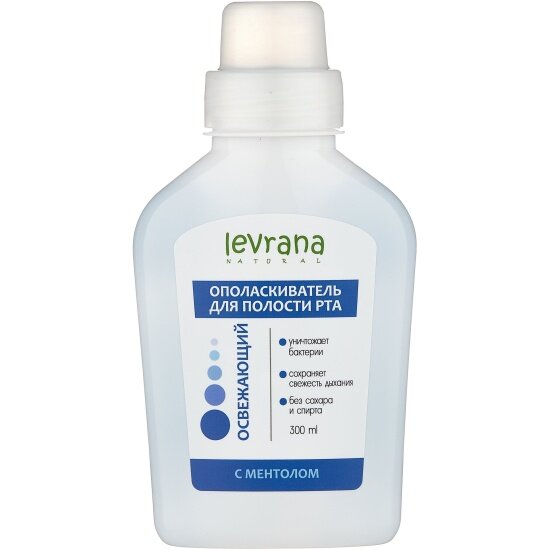 Ополаскиватель для рта Levrana Освежающий Уничтожает бактерии, сохраняет свежесть дыхания, без сахара и спирта. Натуральный освежающий ополаскиватель создан для дополнительной гигиены полости рта, мягкой защиты десен от воспаления, профилактики образования кариеса и зубного налета. Его использование оказывает деликатное антибактериальное действие на всю полость рта и придает дыханию продолжительную свежесть.