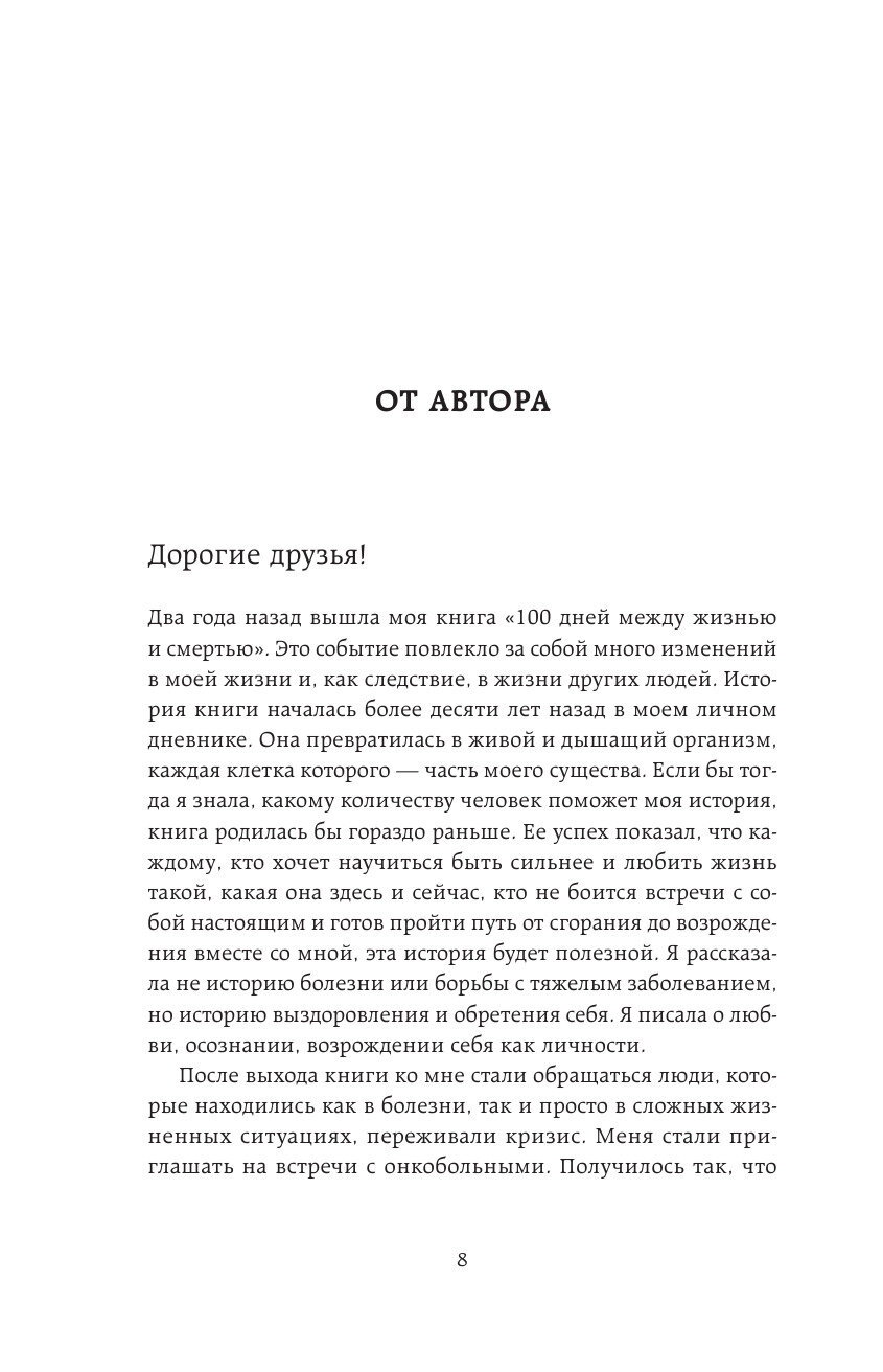 Каждый рассказ в книге Лилии – как отдельно прожитая жизнь. Удивительно, как автор погружает читателя совершенно в новый мир, где каждое слово, каждая эмоция, событие переживается всеми фибрами души и тела. И это правда, что после прочтения ты уже не остаешься прежним. Происходит некая перенастройка внутренняя, как будто прошивку сменили, и причем на всех уровнях – так что обратного пути нет. А новый путь, он удивительный, яркий, сочный. И хочется снова перечитать каждую строчку и «испить ее до дна», потому что вдохновение жить из этой книги можно черпать еще очень долгое время, а может и всю жизнь, кто знает? Очень благодарна Лилии за ее невероятную способность таким, казалось бы, простым способом прививать людям навык выбирать жизнь ❤