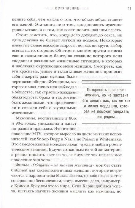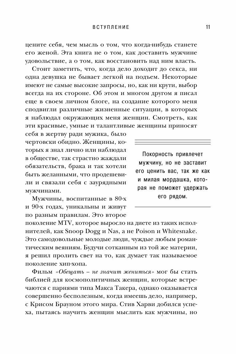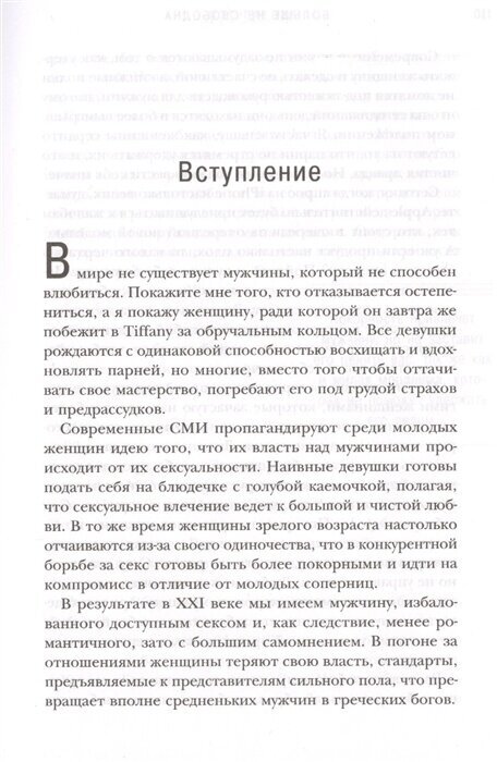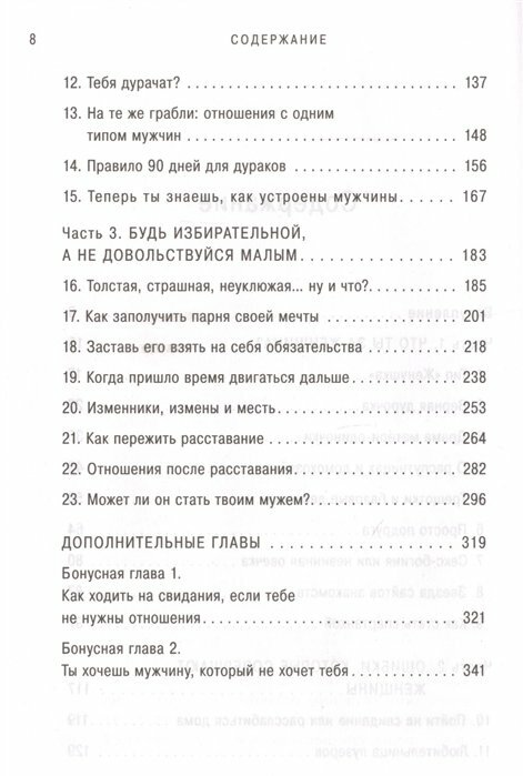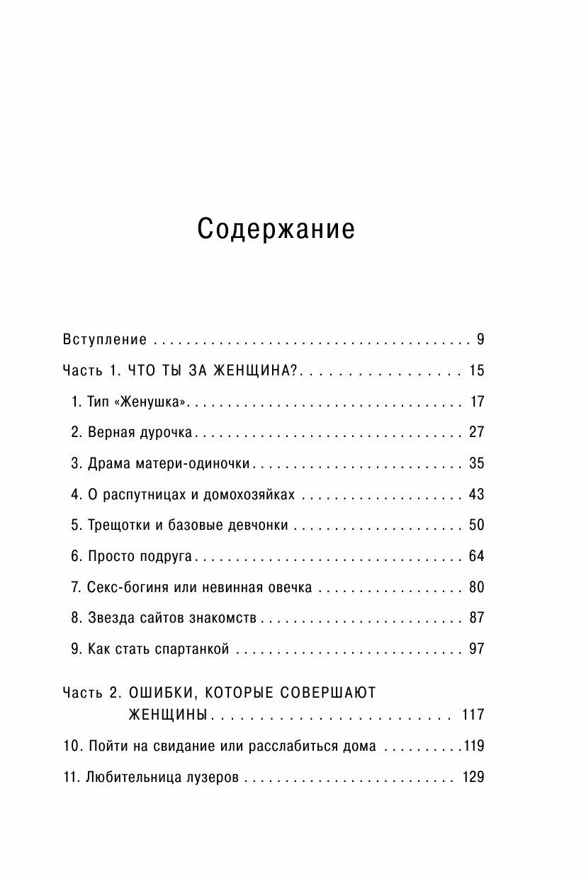 В восторге от этой книги - встряхивает, убирает пелену с глаз, читается взахлеб, благодаря особой авторской манере писать без воды и довольно жестко рубить правду-матку, советы очень практичные, четкие. Автор знает о чем пишет, чувствуется, что он знал и тех девушек и тех мужчин, о которых рассказывает. Очень четкая типология, в которой узнавать себя не хочется, но приходится. И супер-действенная методика, как стать Спартанкой - ради которой сворачивают горы, которой несут букеты, которую не отпускают. Не подойдет тем, кто проблем в отношениях не знал - это именно для проблемных. В книге несомненная польза.