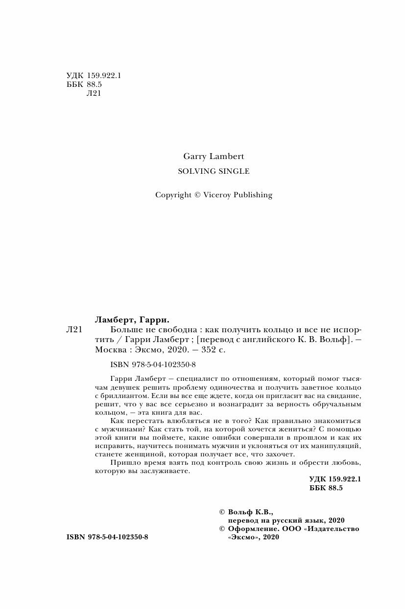 Больше не свободна. Как получить кольцо и все не испортить (Гарри Ламберт); Эксмо, БОМБОРА, 2020
