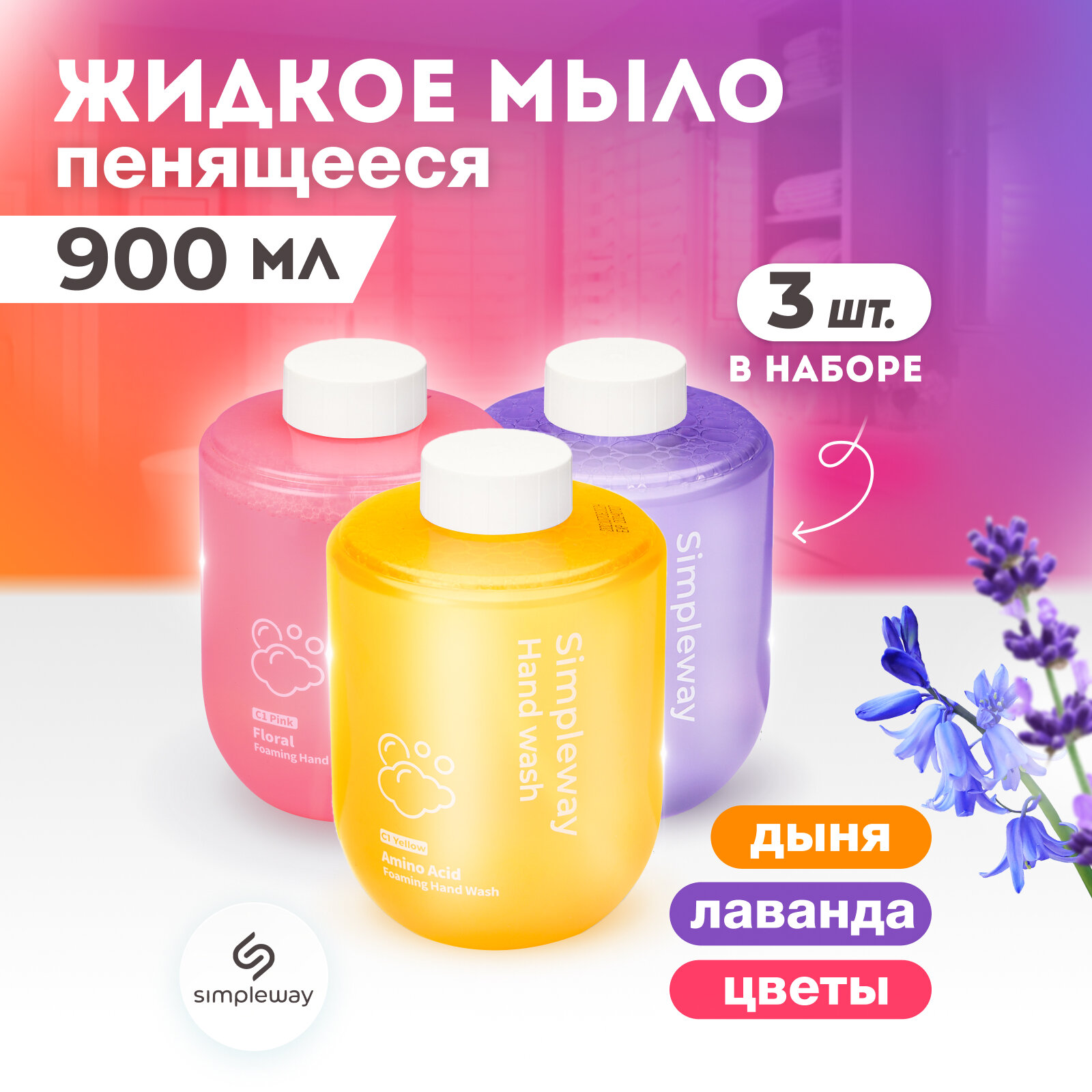 Жидкое мыло SimpleWay для дозатора предназначено для использования в целях личной гигиены и ежедневного ухода за кожей рук и тела. Мыльная жидкость для диспенсера SimpleWay эффективно моет, обеззараживает, имеет приятный запах, питает, смягчает и увлажняет кожу. Набор SimpleWay представляет собой три сменных блока с жидким мылом по 300 мл для бесконтактного дозатора SimpleWay с ароматом дыня, дикий колокольчик, лаванда. Жидкое мыло вспенивается внутри сенсорного дозатора, тем самым мыло не вытекает из дозатора, а выходит нежной и воздушной пенкой. Объема бутылочек жидкого мыла хватит на достаточно большое количество использований. Состав мыла: вода, кокоилглутамат натрия, кокамидопропилбетаин, глицерин, микоко-глюкозид, ПЭГ-7( глицерил кокоат), лимонная кислота, дисодиум эдта, метилхлороизотиазолинон, метилизотиазолинон, нитрат магния, хлорид магния. Мягкая пена от мыла с легкостью сможет приучить детей к правильной гигиене. Блок подходит для диспенсера Xiaomi Mi.