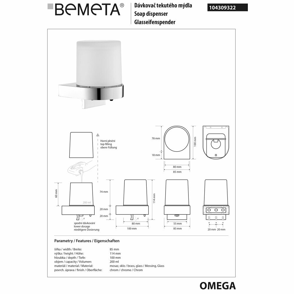 Дозатор жидкого мыла Bemeta Omega 104309322