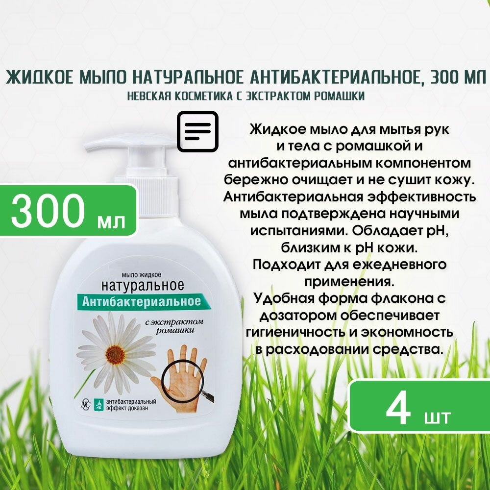 Мыло жидкое Невская Косметика "Антибактериальное" натуральное с экстрактом ромашки 300мл (12206)