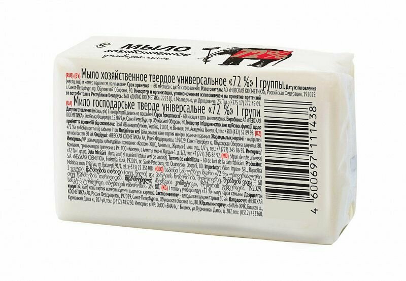 На сегодняшний день товар «Мыло хозяйственное Невская Косметика "Универсальное" 72% 180гр (11143**)» можно купить с кешбеком в 3 магазинах: Ашан, МаксидоМ, Яндекс.Маркет