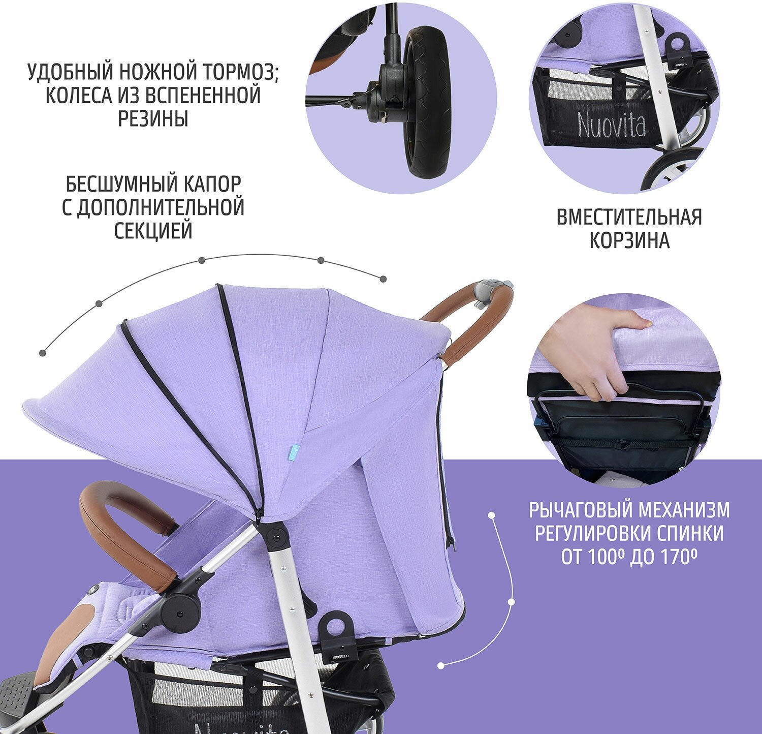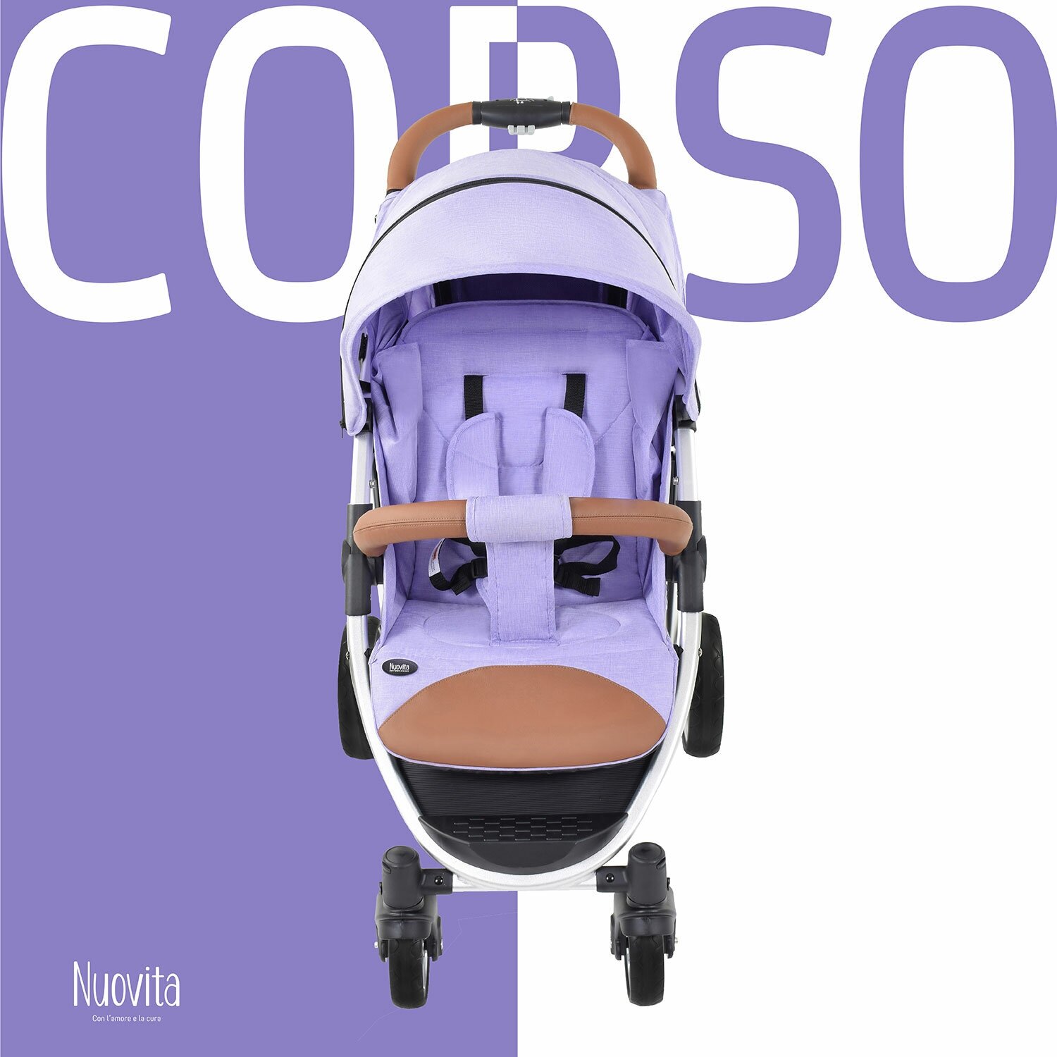 Коляска Nuovita Corso создана для комфортных прогулок и путешествий с ребёнком, достигшим шестимесячного возраста.