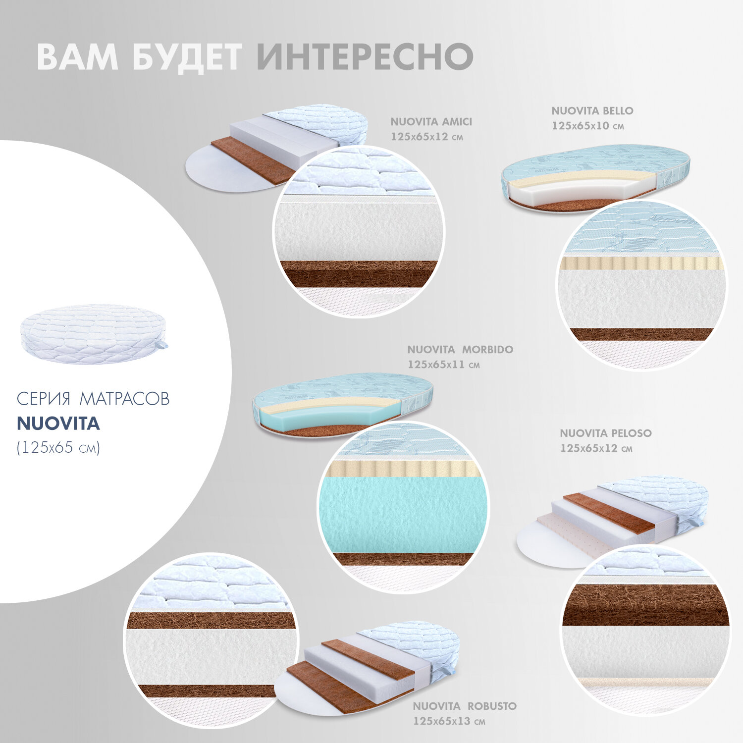 Сервис сравнения цен СкидкаГИД предлагает сравнить цены на товар «Детский матрас Nuovita Robusto овальный 125х75х13см (NUO_DROB_211)»