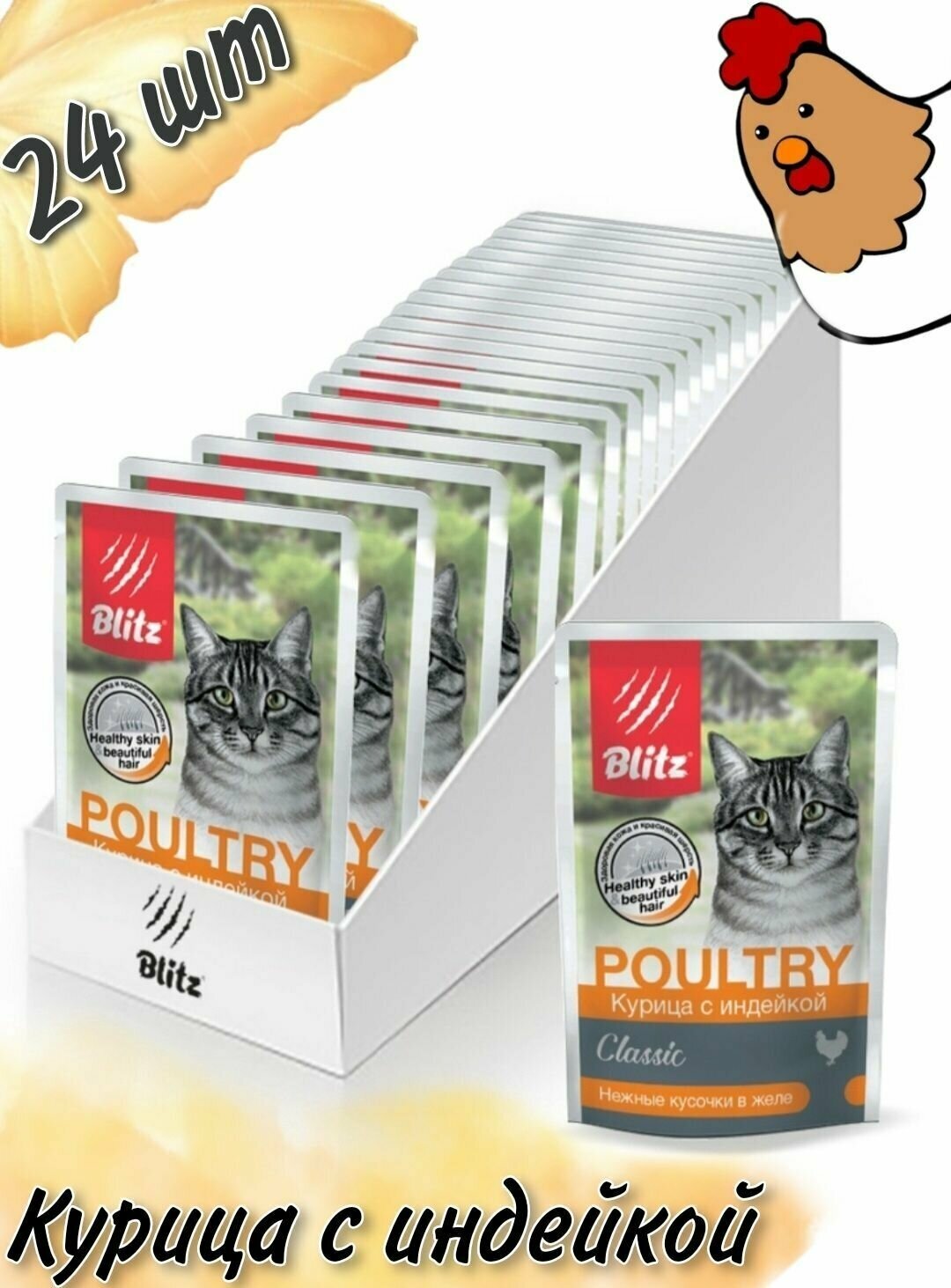 Сервис сравнения цен СкидкаГИД предлагает сравнить цены на товар «Влажный корм для кошек Blitz Курица с индейкой в желе 0085 кг»