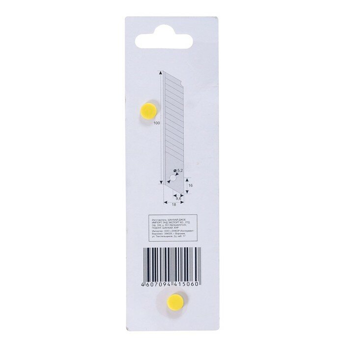 Набор сменных лезвий. Ширина полотна: 18 мм. Предназначены для строительных и канцелярских ножей. На лезвия нанесены засечки, которые позволяют надломить использованный сегмент, чтобы обеспечить острый и пригодный к работе срез. Изготовлены из конструкционной специальной качественной стали. Обладают высокой прочностью, износостойкостью и высокими упругими свойствами. Используются для реза различных материалов: линолеума, ковровых покрытий, бумаги, картона, гипсокартона обоев и пленки, резины и т. д.Количество в упаковке – 10 штТакже с этим товаром покупают : Строительный нож DIZAYNTOOLS 18 мм, металлический корпус 500 № 906436738), Строительный нож DIZAYNTOOLS 18 мм, металлический корпус 501 (№ 928783894)