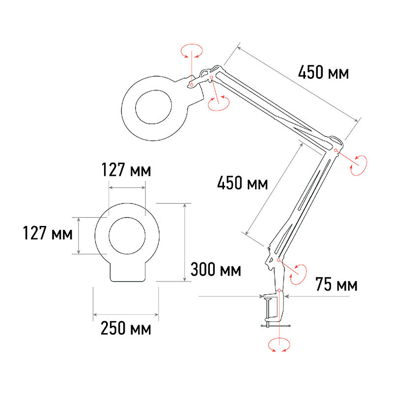 6. Струбцинное крепление к столу. Зафиксирует лампу-лупу на любой плоской поверхности.