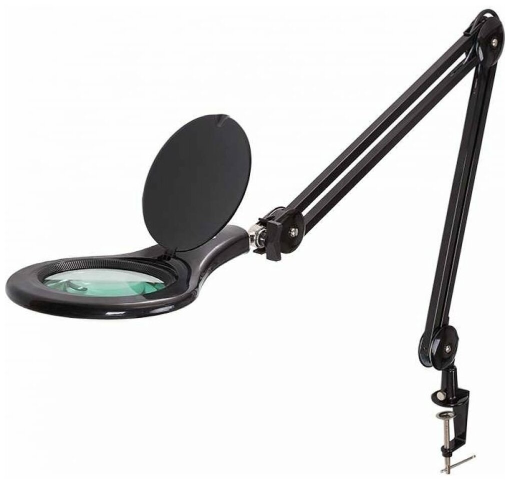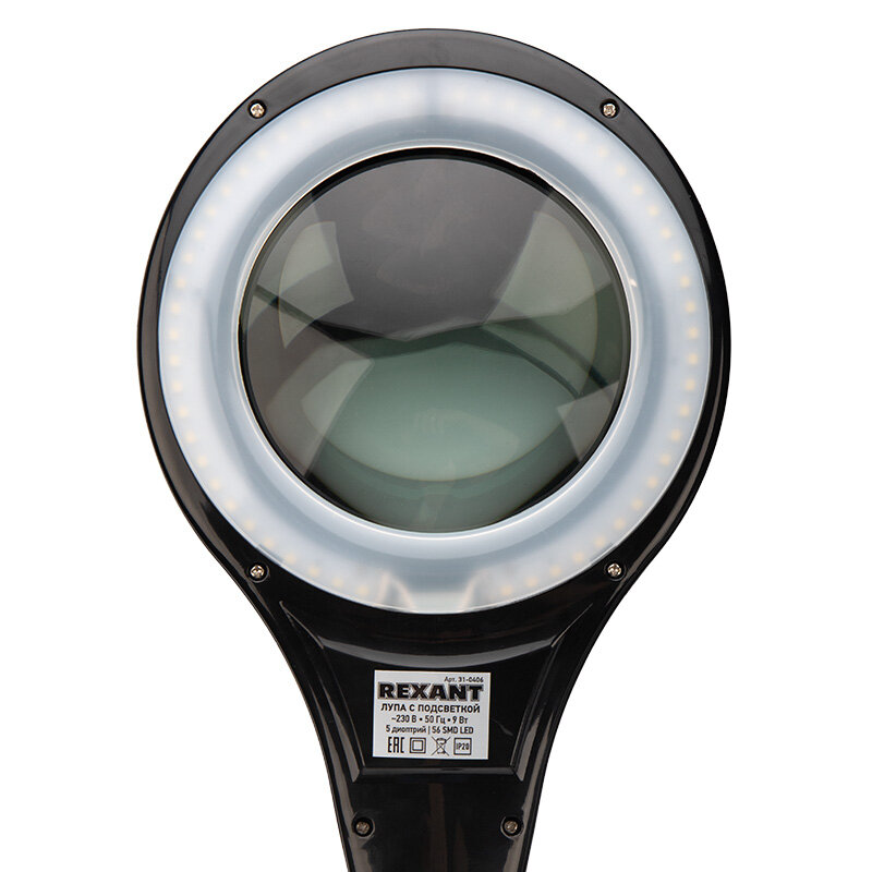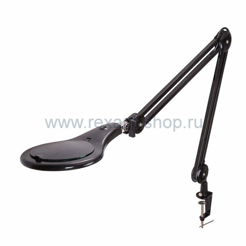Лупа на струбцине круглая настольная 5Х с подсветкой 56 SMD LED, черная REXANT предназначена для визуального увеличения различных мелких предметов или их фрагментов.