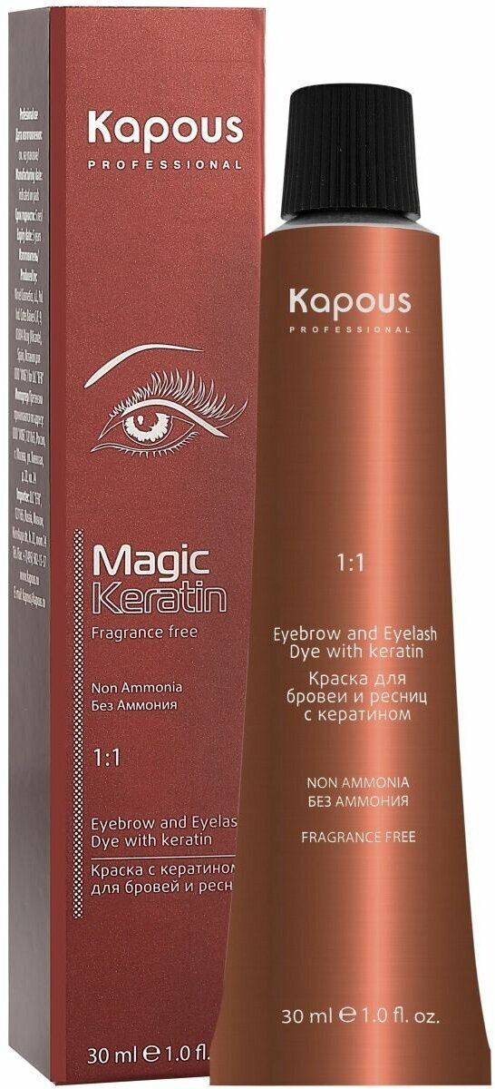 | Полное наименование | Крем-краска для бровей и ресниц Magic Keratin 0.01 Графит, 30 мл Kapous Professional |