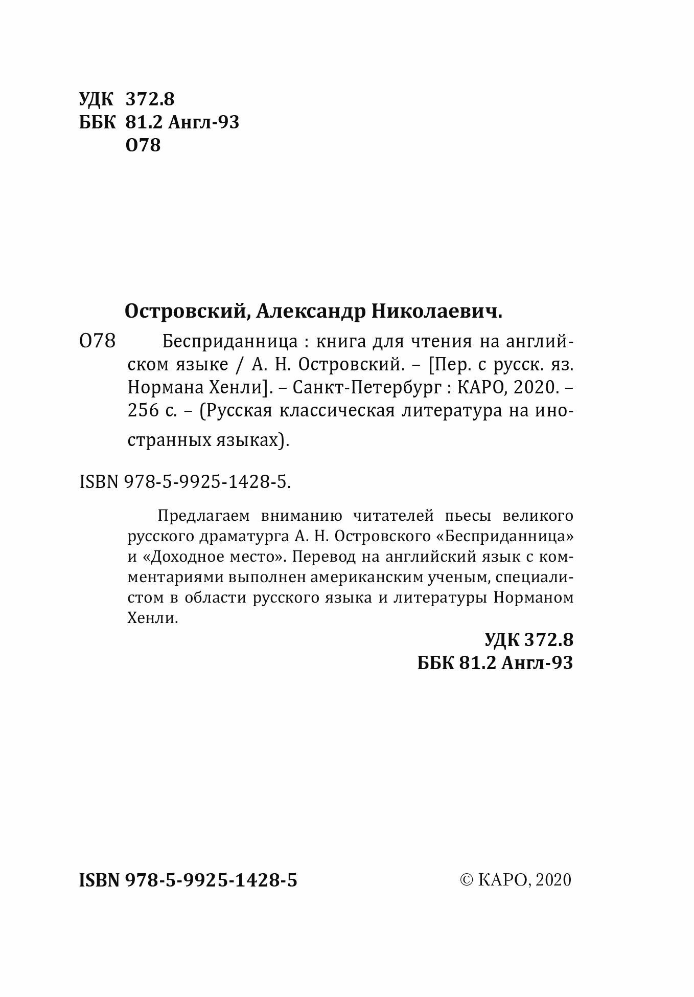 Without a dowry / Бесприданница. Книга для чтения на английском языке (Александр Островский); КАРО, 1879, 1857