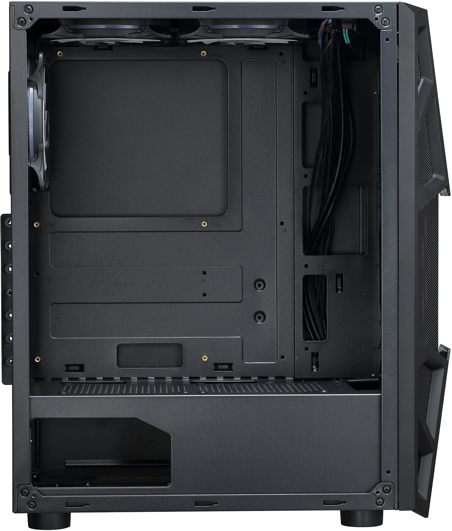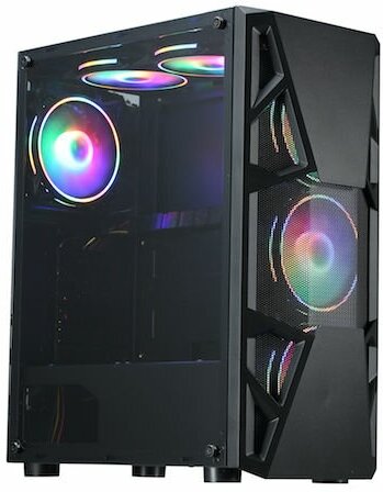 Прочный компьютерный корпус ATX FORMULA RGB окрашен в лаконичный черный цвет. Одна из боковых панелей здесь прозрачная, сделана из закаленного стекла. Размещение HDD поперечное, без корзины. На передней панели есть два разъема USB 2.0 и один USB 3.0. Спереди также есть стандартные разъемы для наушников и микрофона. Имеется 2 внутренних отсека 2,5 дюйма, 2 отсека 3,5 дюйма. Максимальная длина видеокарты до 310 мм. На передней панели корпуса ATX FORMULA RGB установлено 3 вентилятора, на задней один, и на верхней еще 2. Для блока питания предусмотрено место внизу корпуса, но в комплектацию он не входит.