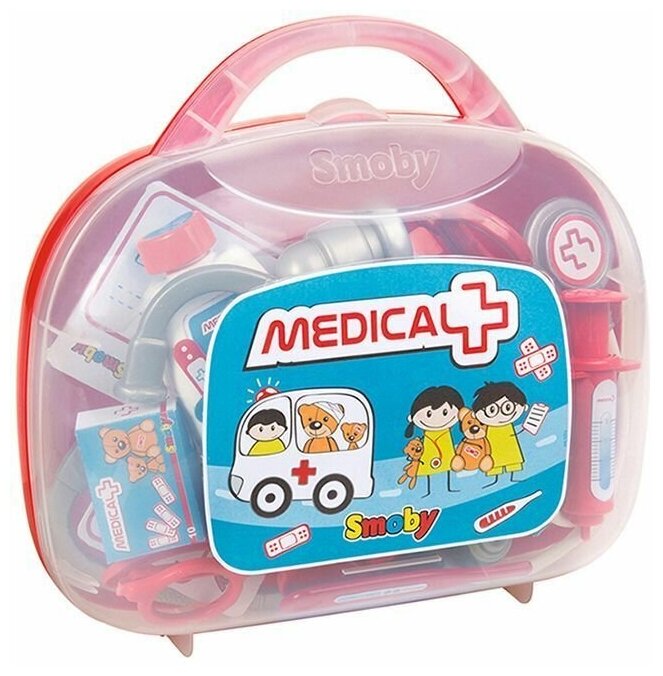 Smoby - взросление еще никогда не было таким увлекательным! В комплекте: докторский чемоданчик с медицинским набором, 15 аксессуаров.