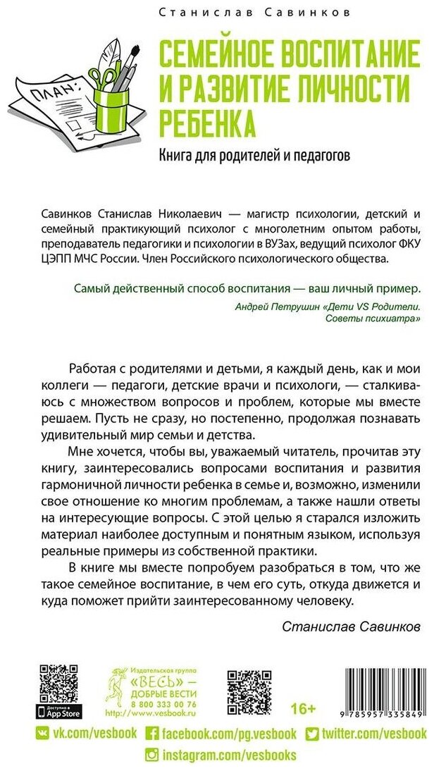 Сервис сравнения цен СкидкаГИД предлагает сравнить цены на товар «Книга: Семейное воспитание и развитие личности ребенка (Савинков Станислав Николаевич); Весь, 2020»