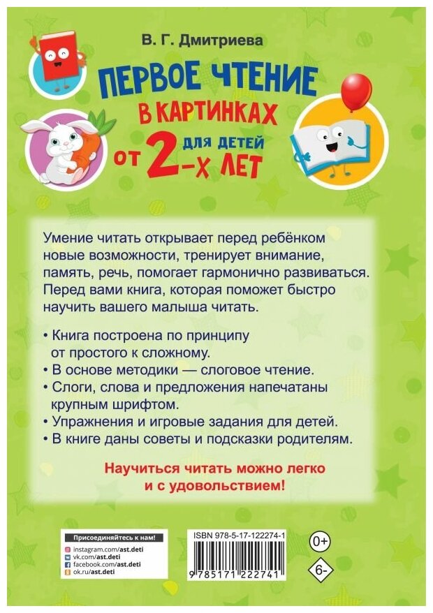 На сегодняшний день товар «Книга: Первое чтение в картинках для детей от 2-х лет (Дмитриева Валентина Геннадьевна); Сова. Малыш (Обучающая и развивающая литература), 2020» можно купить с кешбеком в 5 магазинах: book24, ЛитРес, Буквоед, Яндекс.Маркет, Читай-город