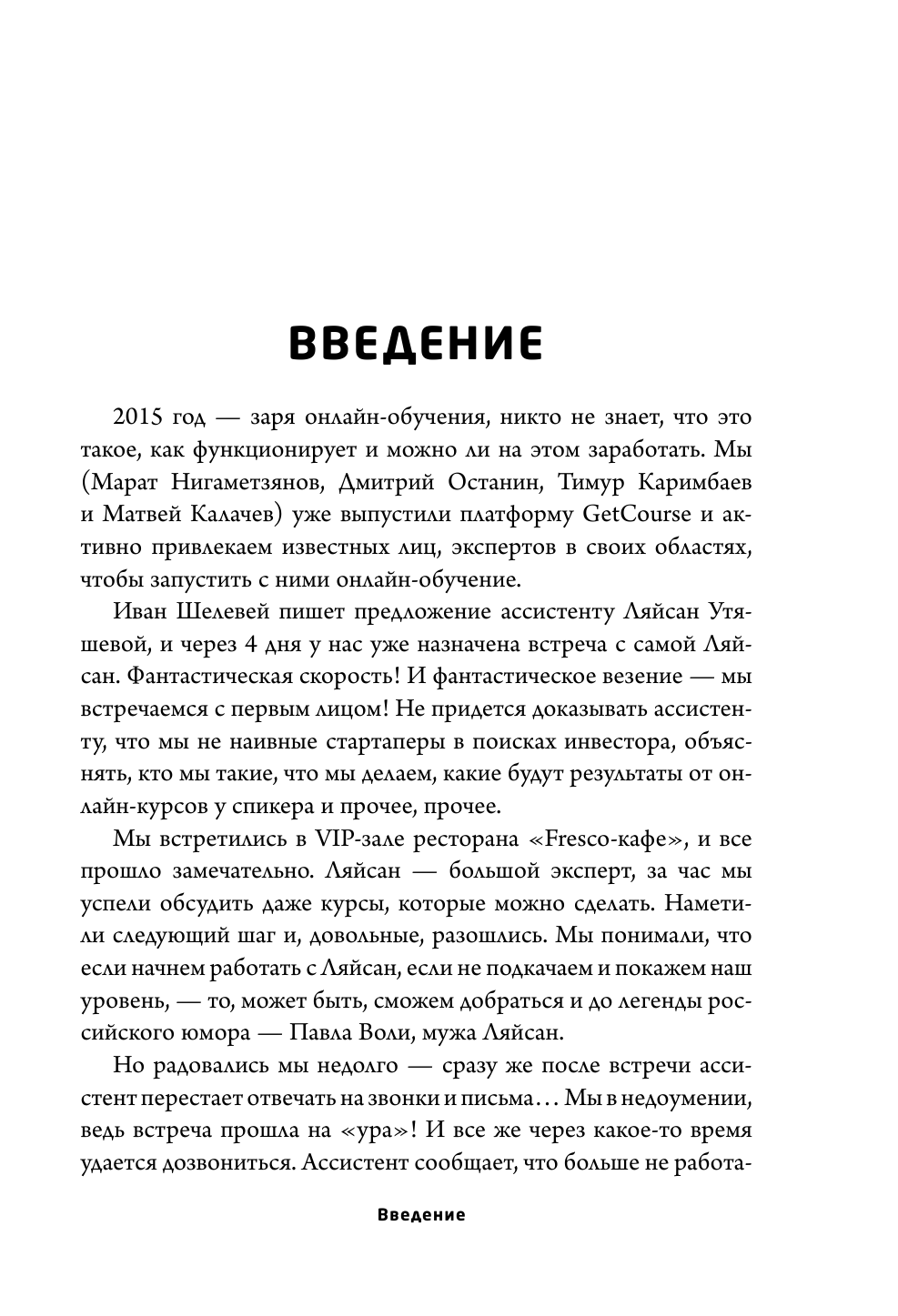 Это книга для тех, кто хочет быть успешен и вывести свой проект на новый уровень. Ведь мир бизнеса давно уже вышел за рамки офлайн. Теперь многие компании связывают свое будущее с онлайн-сферой, запуская проекты в Интернете, онлайн-курсы и онлайн-продукты. Книга от создателей одного из самых успешных проектов Рунета с миллионной аудиторией GetCourse как раз рассказывает о том, как запустить успешный онлайн-продукт - образовательный курс.