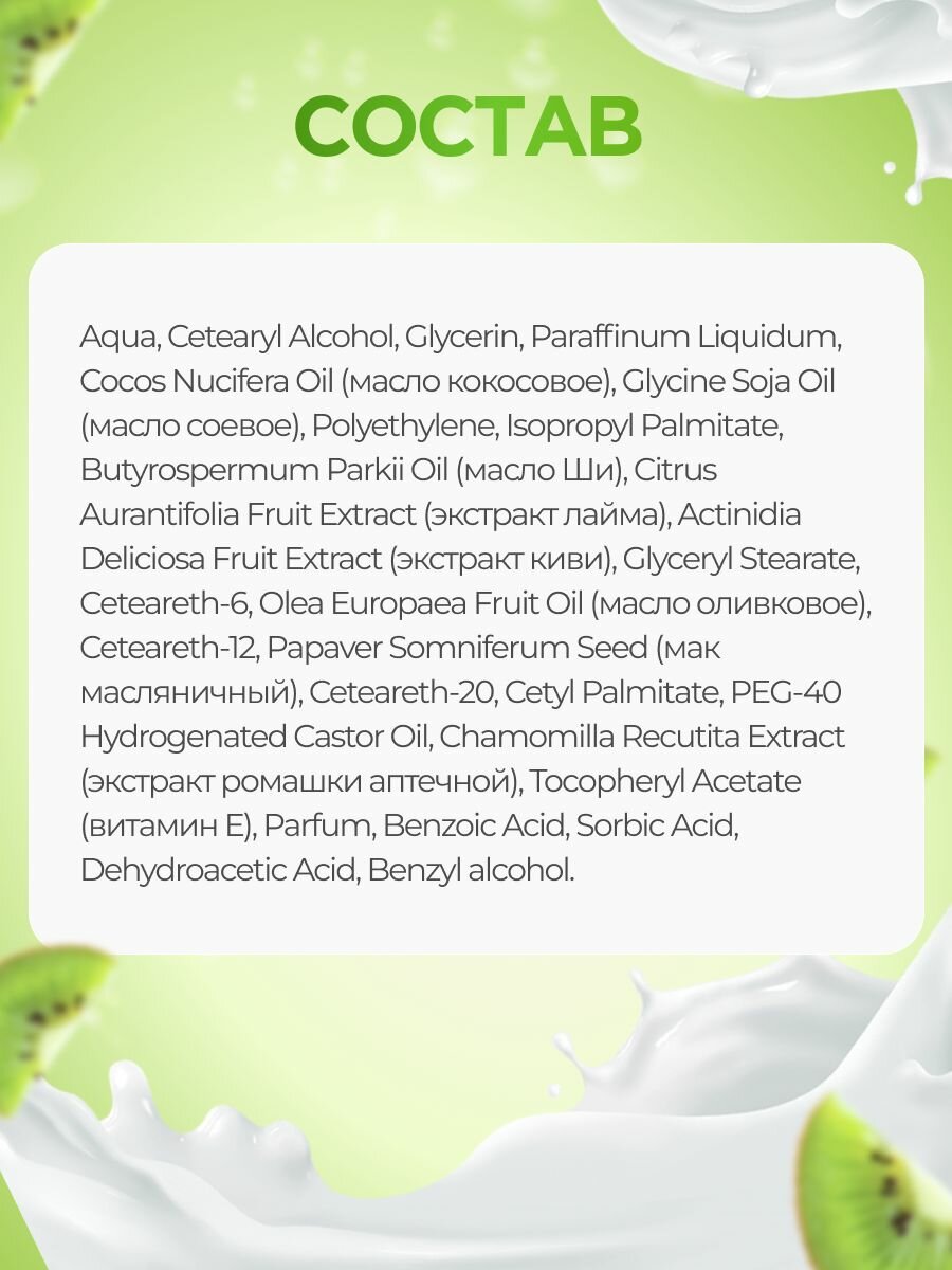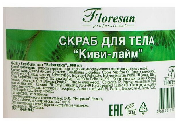 Скраб для тела "Киви и лайм" от Floresan - это питательное и увлажняющее средство, которое обеспечивает интенсивный уход за кожей. Благодаря натуральным отшелушивающим bio-гранулам, он нежно массажирует и очищает кожу, делая ее мягкой и гладкой.Уникальность этого скраба заключается в его био-активном комплексе, который способствует выводу токсинов из организма и улучшает тонус кожи. Входящие в состав органические экстракты киви и лайма увлажняют и питают кожу, оставляя на ней шлейф тонкого аромата.Применение скраба для тела "Киви и лайм" не требует особых усилий. Нанесите его на тело легкими массирующими движениями, а затем смойте водой.Скраб подходит для всех типов кожи и может использоваться на руках, ногах и теле. Он не содержит парабенов и силиконов, а также обогащен маслами ши, кокосовым и оливковым, которые обеспечивают интенсивное увлажнение и питание кожи.Floresan - российский бренд, который зарекомендовал себя на рынке как производитель качественной и безопасной продукции для ухода за кожей.