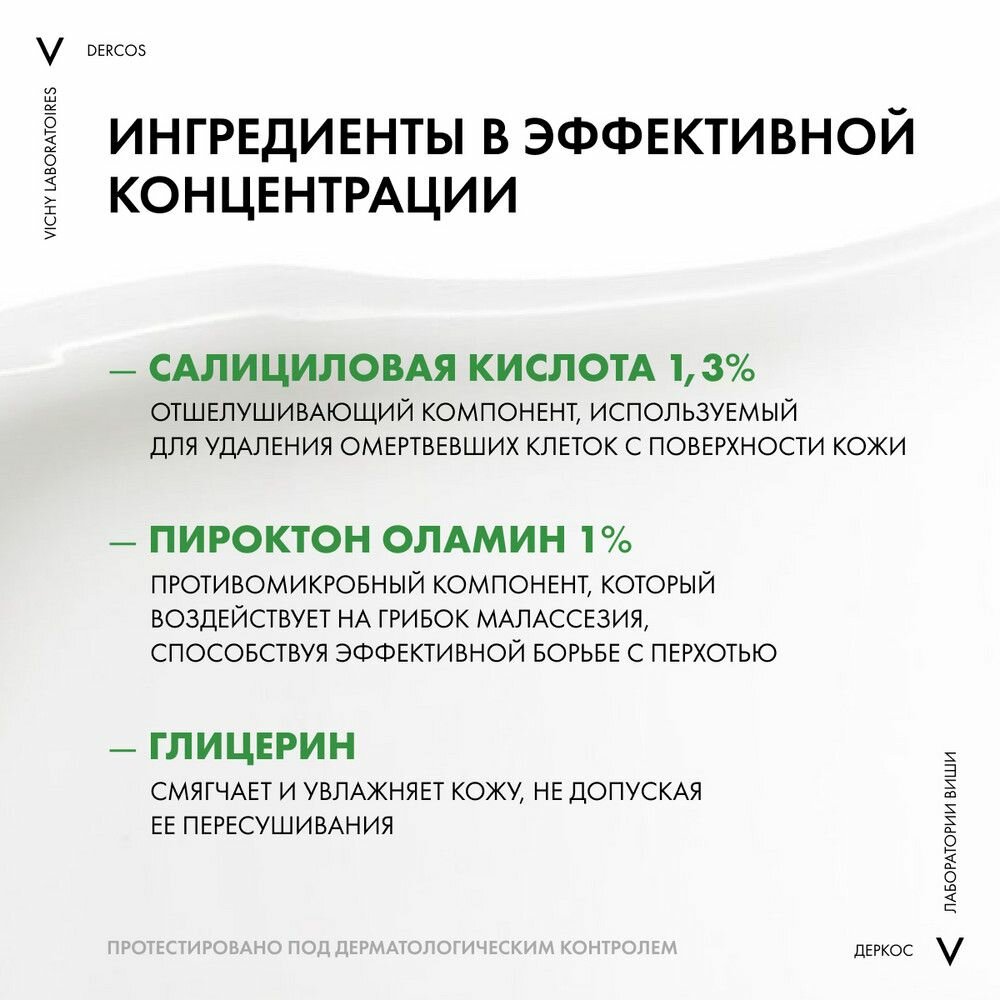 Глубоко очищающий шампунь-пилинг DERCOS ПРОТИВ ПЕРХОТИ K разработан специально для борьбы с трудновымываемой перхотью и повышенной жирностью кожи головы. Формула с Пироктон Оламином, отшелушивающими частицами и физиологическим pH 5, 5 эффективно борется с перхотью даже устойчивыми ее формами, способствуя нормализации баланса микробиома кожи головы, устраняет зуд и обеспечивает интенсивное, но бережное очищение/скрабирование.