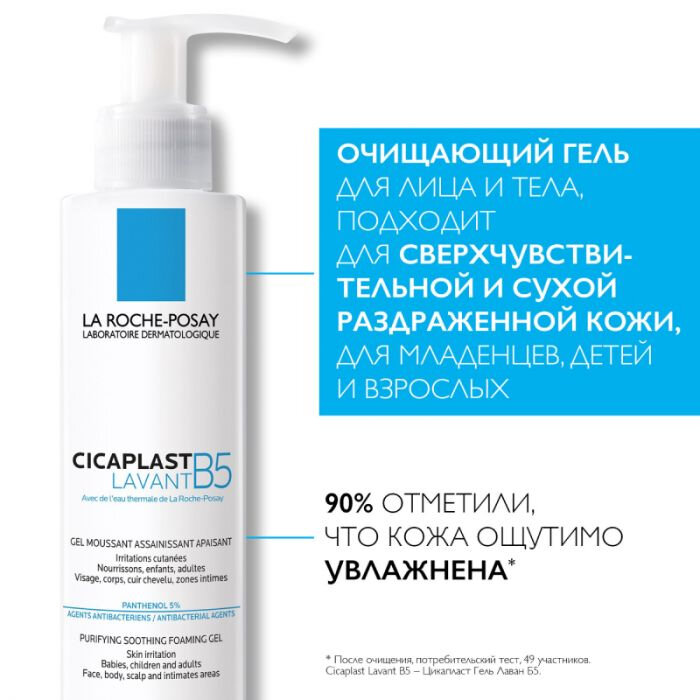 Очищающий гель для сверхчувствительной и склонной к раздражению в результате сухости кожи. Иногда коже нужен особенный уход и защита. CICAPLAST LAVANT B5 - cредство для мягкого очищения чувствительной и сухой кожи младенцев, детей и взрослых. Приятная пенящаяся текстура очищает, увлажняет и заметно успокаивает, не оставляя ощущения сухости. Оптимальная переносимость была подтверждена в ходе тестирования на чувствительной коже под контролем дерматологов, педиатров, гинекологов, офтальмологов.