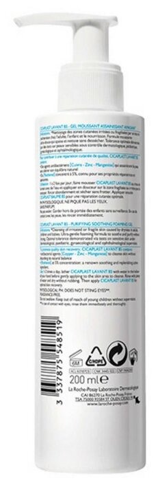 Очищающий гель La Roche-Posay Cicaplast B5 для успокоения кожи лица и тела младенцев детей и взрослых 200 мл