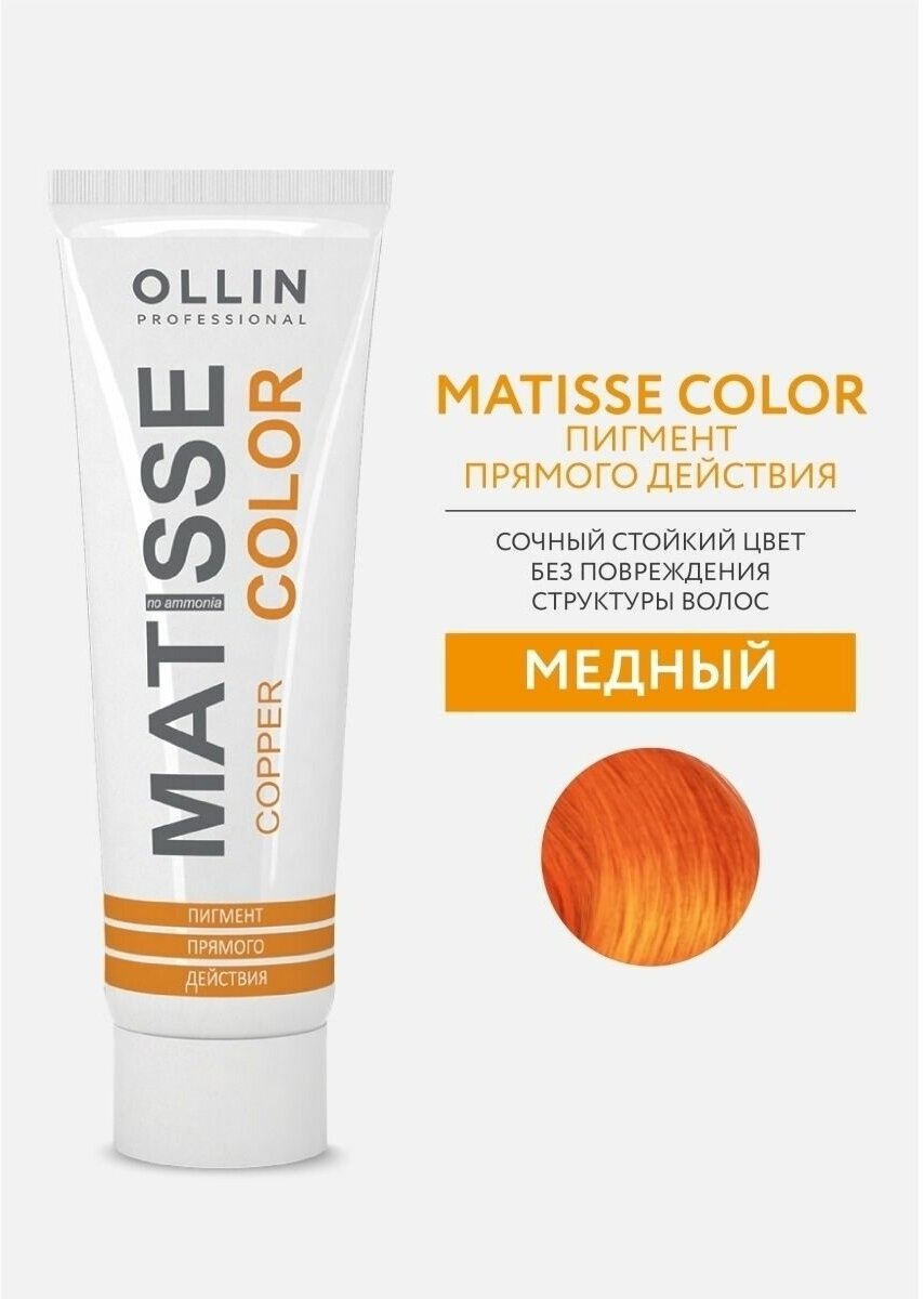Действие: Пигмент прямого действия Ollin Professional Matisse предназначен для окрашивания волос без использования окислителя. Краска придает волосам насыщенный цвет, блеск и яркость. Благодаря низкому содержанию в своем составе аммиака, краска не повреждает волосы, при этом ложится равномерно, легко и быстро. Протеины пшеницы восстанавливают волосы, делают их сильными, эластичными и гибкими.
