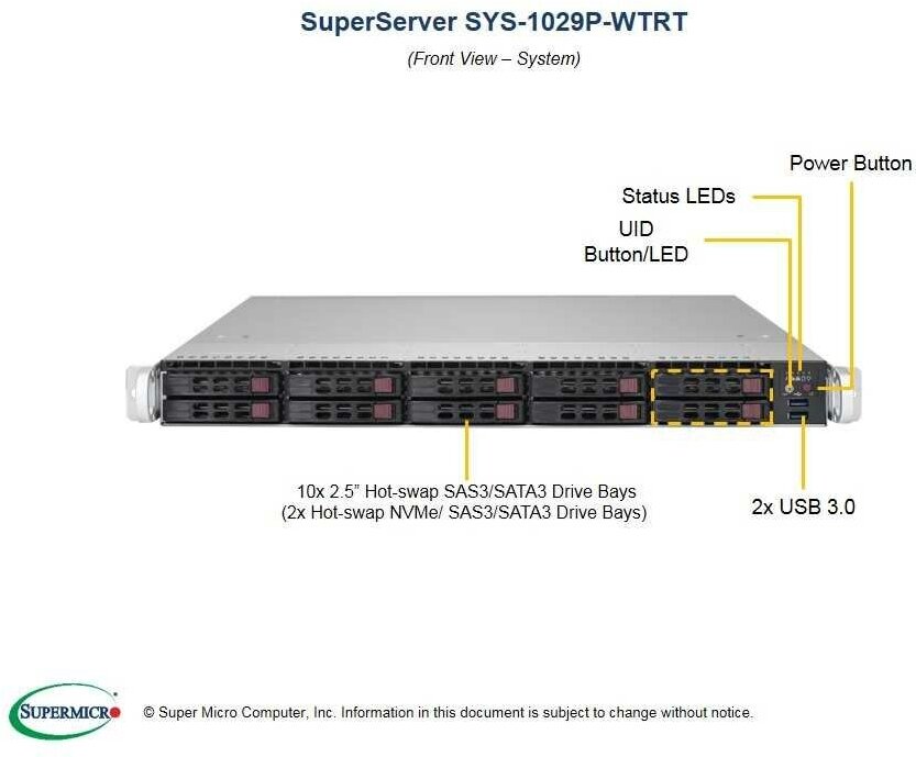 | Full name | 1U SATA SYS-1029P-WTRT SUPERMICRO |