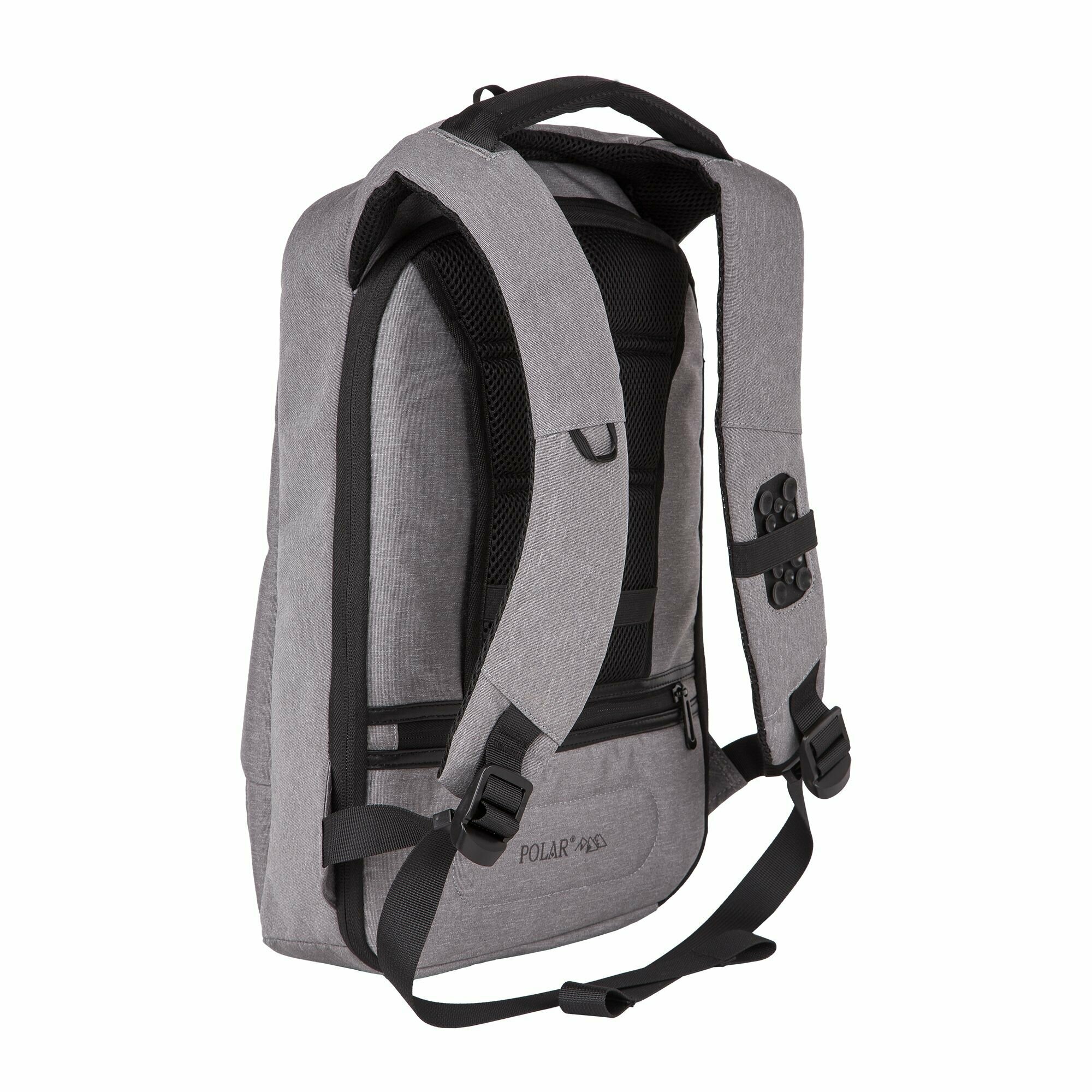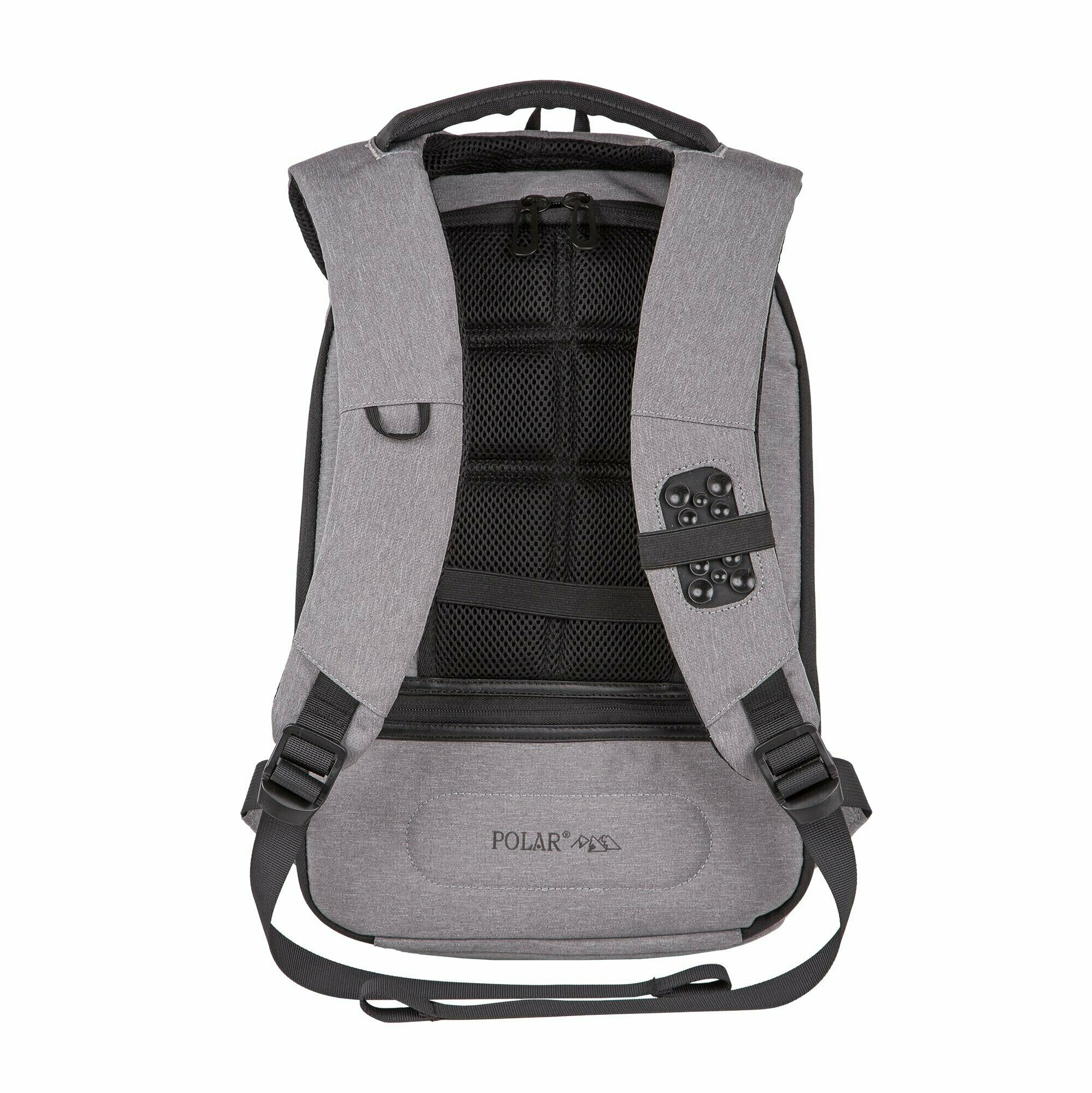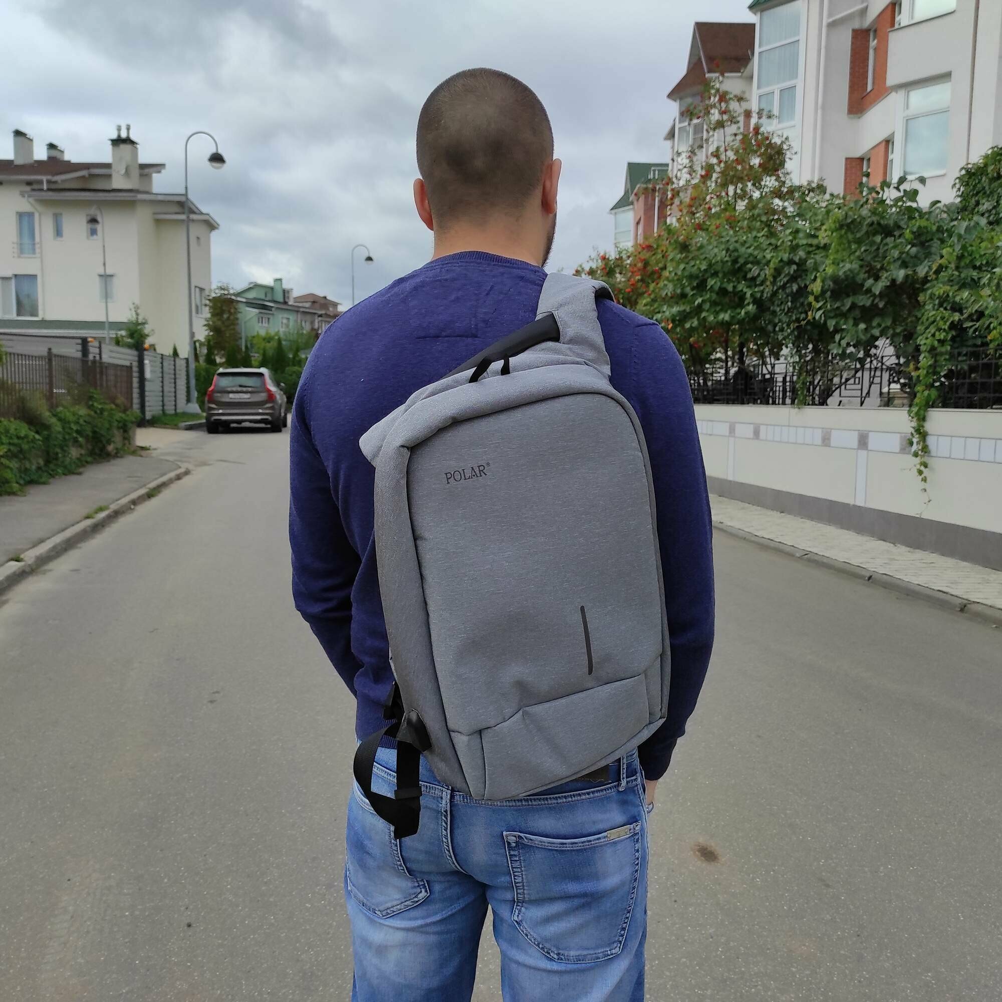 Городской рюкзак Полар с защитой от мошенников Ваш надежный спутник в повседневной жизни . Главное преимущество рюкзака – это его потайная молния, со стороны спины. Отдел для ноутбука с диагональю до 13,3 дюйма (24x 30x3) и карман для планшета(24x22x1). Рюкзак оснащен USB-кабелем и и USB - портом.