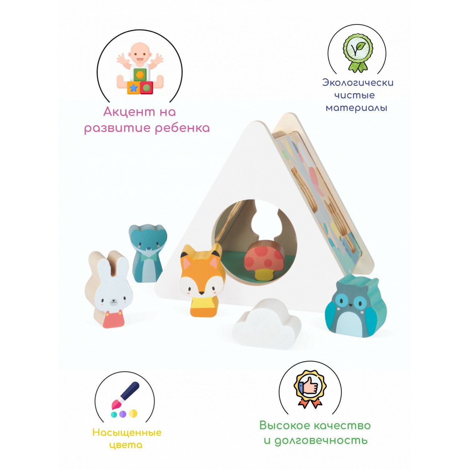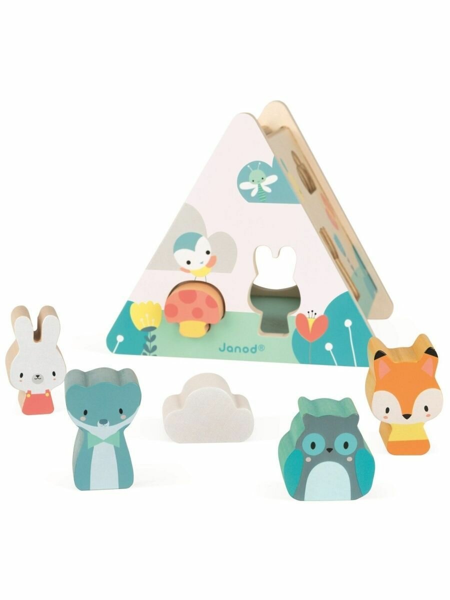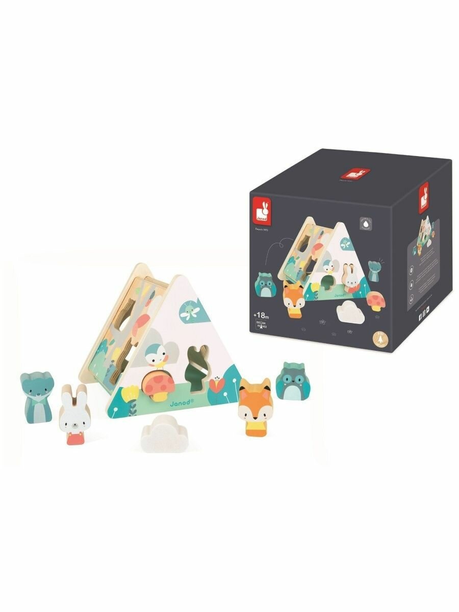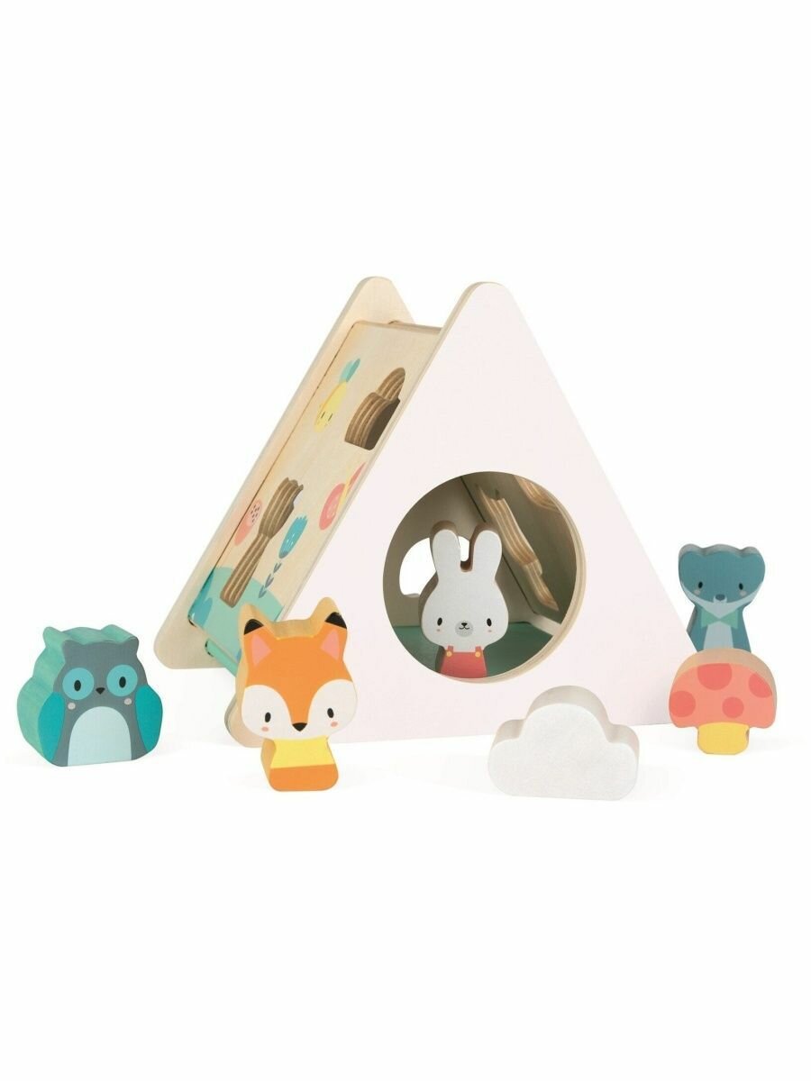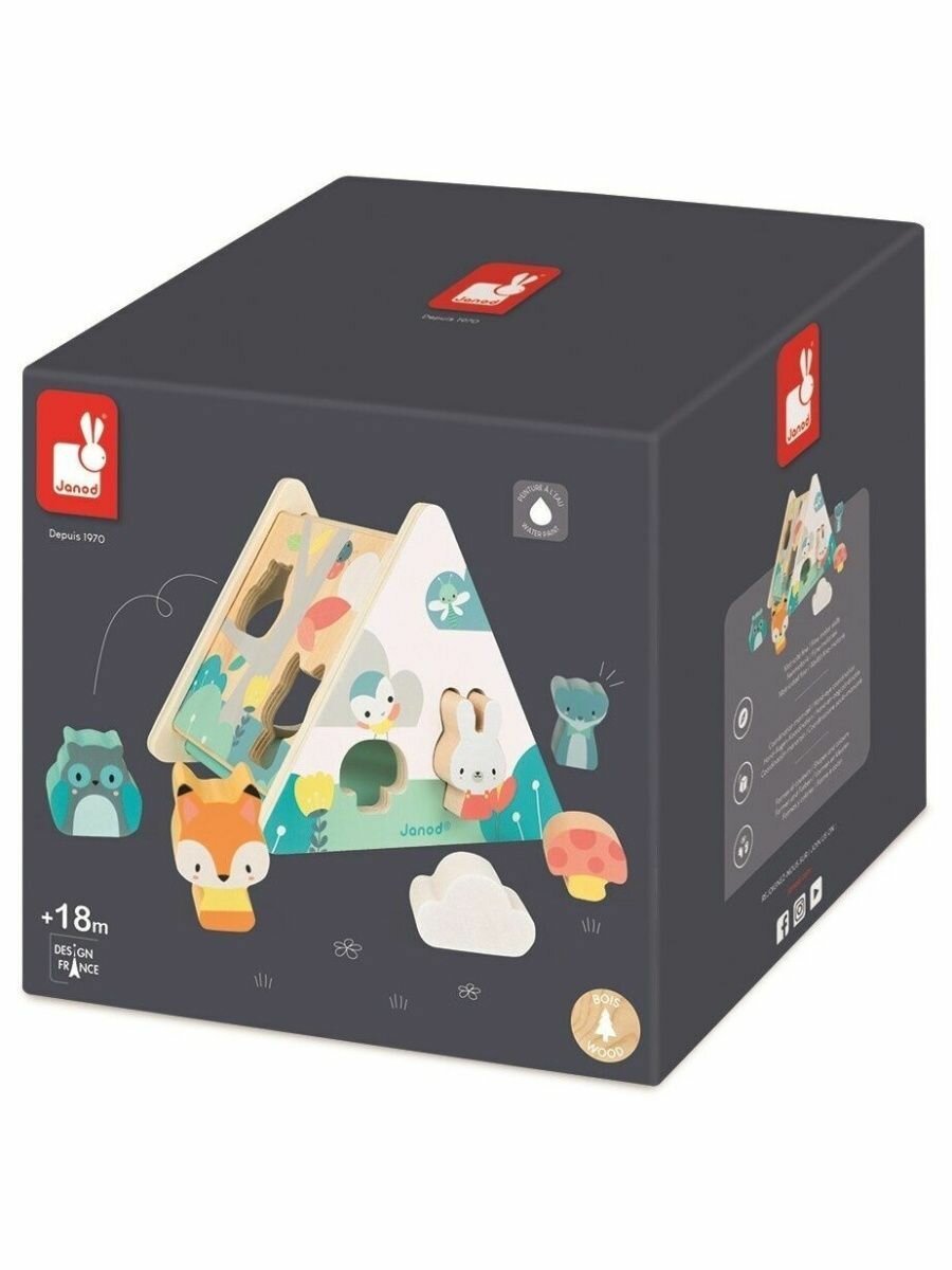 Пришло время познакомиться с лесными животными! Этот симпатичный деревянный сортер в мягких цветах очень современный и понравится малышам. Доступная с 18 месяцев, эта игра для детей раннего возраста поможет вашему ребенку развить ловкость, весело проводя время. Ваш ребенок научится в собственном темпе манипулировать предметами, чтобы поместить их на соответствующие места. После того как фигуры будут на месте, их можно будет легко достать из задней части вигвама. Этот деревянный сортер содержит мишку, кролика, лису, сову, гриб и облако. Для дополнительной безопасности мы выбрали краску на водной основе, поскольку дети до 3 лет регулярно берут игрушки в рот.