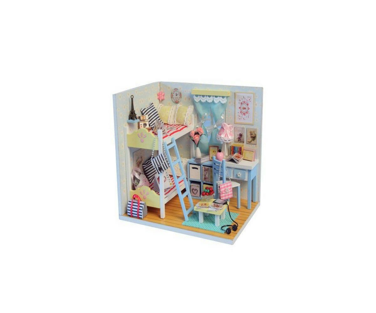 В наборе, состоящем из 93 элементов, вы найдёте все необходимое для творчества. Сборка мельчайших деталей уютного интерьера поможет развить усидчивость и аккуратность. Завершающим штрихом моделирования станет проводка светодиодной подсветки.