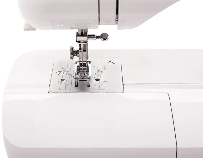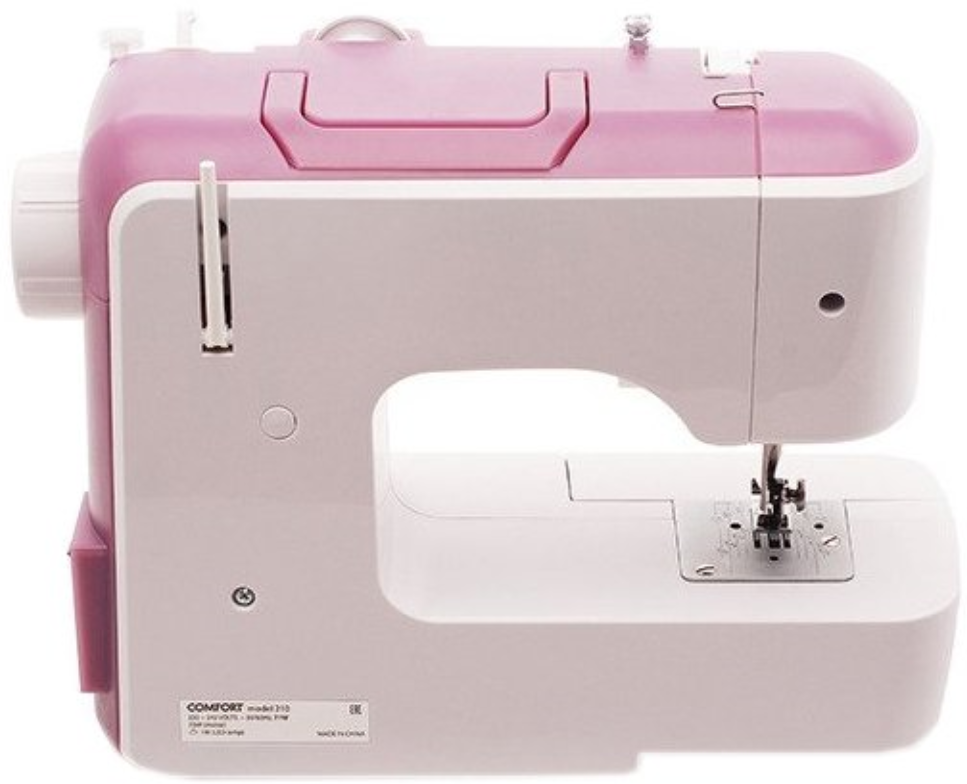 Швейная машина Comfort 210 - относится к типу электромеханических, выполняет 13 наиболее распространенных общеизвестных типов строчек, таких как прямые, эластичные, потайные, зигзаг, имеет вертикальное челночное устройство, полуавтоматическую обработку петли, реверс (обратный ход/закрепка), свободный рукав для обработки узких и круговых изделий, отсек для хранения аксессуаров, быструю смену лапок, подсветку, скорость шитья регулируется электрической педалью. Максимальная длина стежка до 4 мм, максимальная ширина строчки так же до 4 мм. Комплект данной модели включает набор лапок: универсальная (зиг-заг),лапка для вшивания молнии, лапка для полуавтоматического выполнения петли, пластиковые шпульки, запасные иглы. Данная модель подойдет, как для новичков, так и более опытных мастериц в швейном деле.
