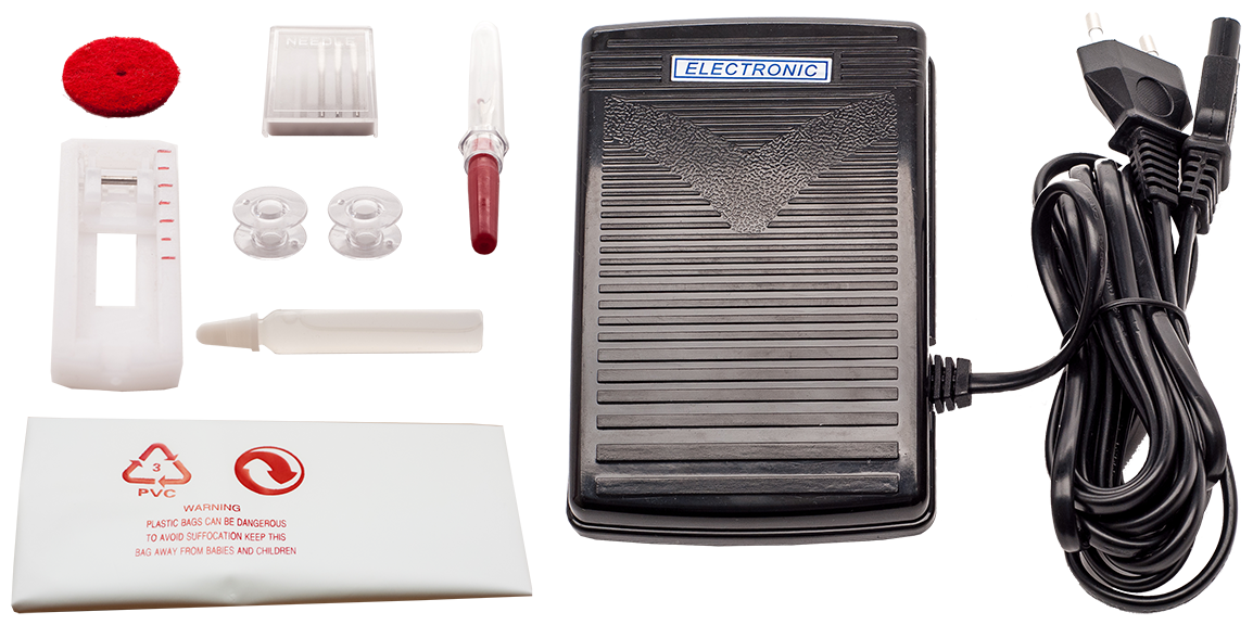 | Комплект поставки | лапока универсальная (зиг-заг);лапка для вшивания молнии; лапка для полуавтоматического выполнения петли; пластиковые шпульки; запасные иглы |