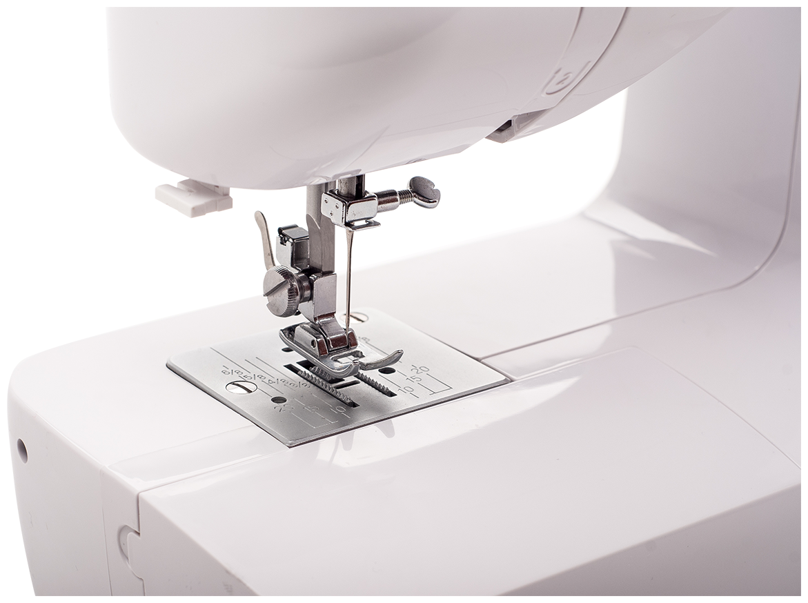 | Прочие особенности и свойства | Комплектация: инструкция, лапка для вшивания молнии, лапка для петель, лапка универсальная, набор игл, педаль , чехол , шнур питания , шпульки, Дополнительно: встроенный нитеобрезатель, подсветка, реверс, регулировка длины стежка, регулятор натяжения нити, ручка для переноски |