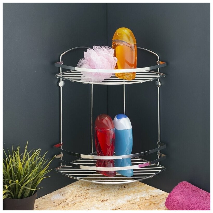 Полка-корзина Tekno-tel LM008 угловая двухъярусная. Выполнена из высококачественных материалов. Подчеркнет современный стиль любой ванной комнаты или кухни.