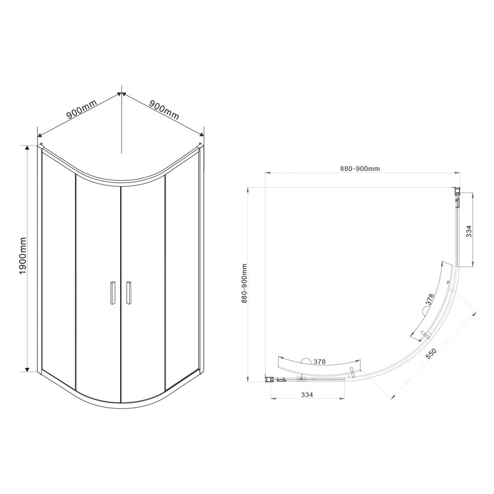 Модель: Garda VSQ-1G900CL 90x90 профиль Хром стекло прозрачное