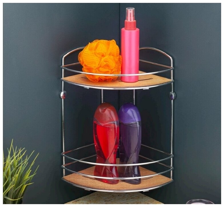Полка-корзина Tekno-tel BK074 угловая двухъярусная. Выполнена из высококачественных материалов. Подчеркнет современный стиль любой ванной комнаты или кухни.