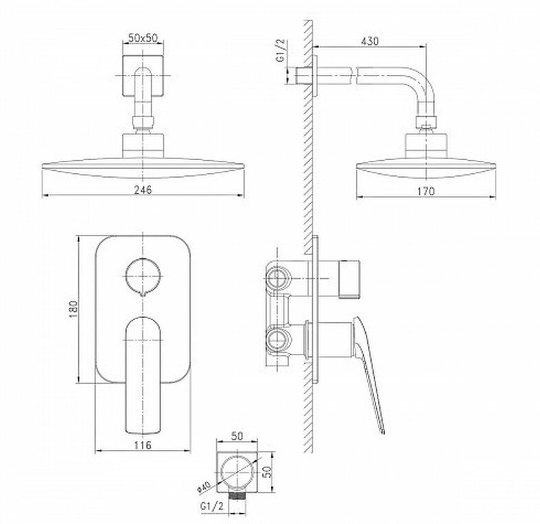 | Форма верхнего душа | Прямоугольная |